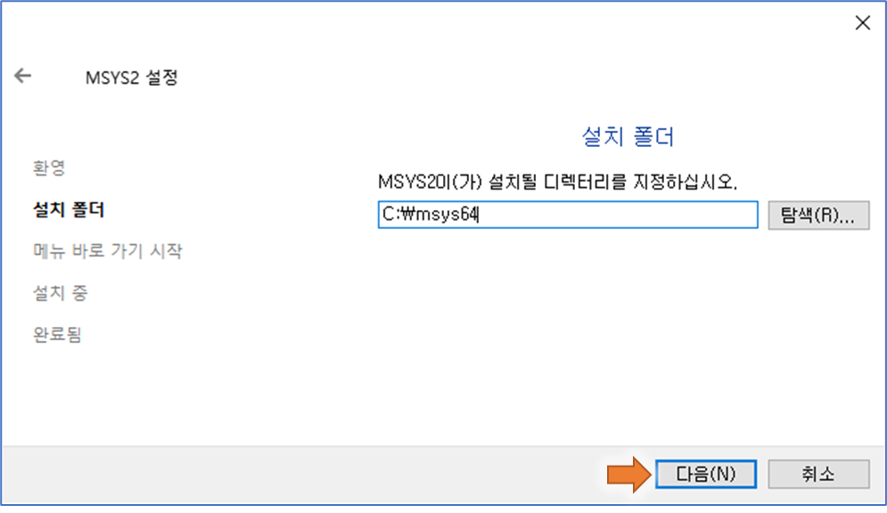 @삭제 방법: 설치한 경로의 C:\msys64\uninstall.exe 실행