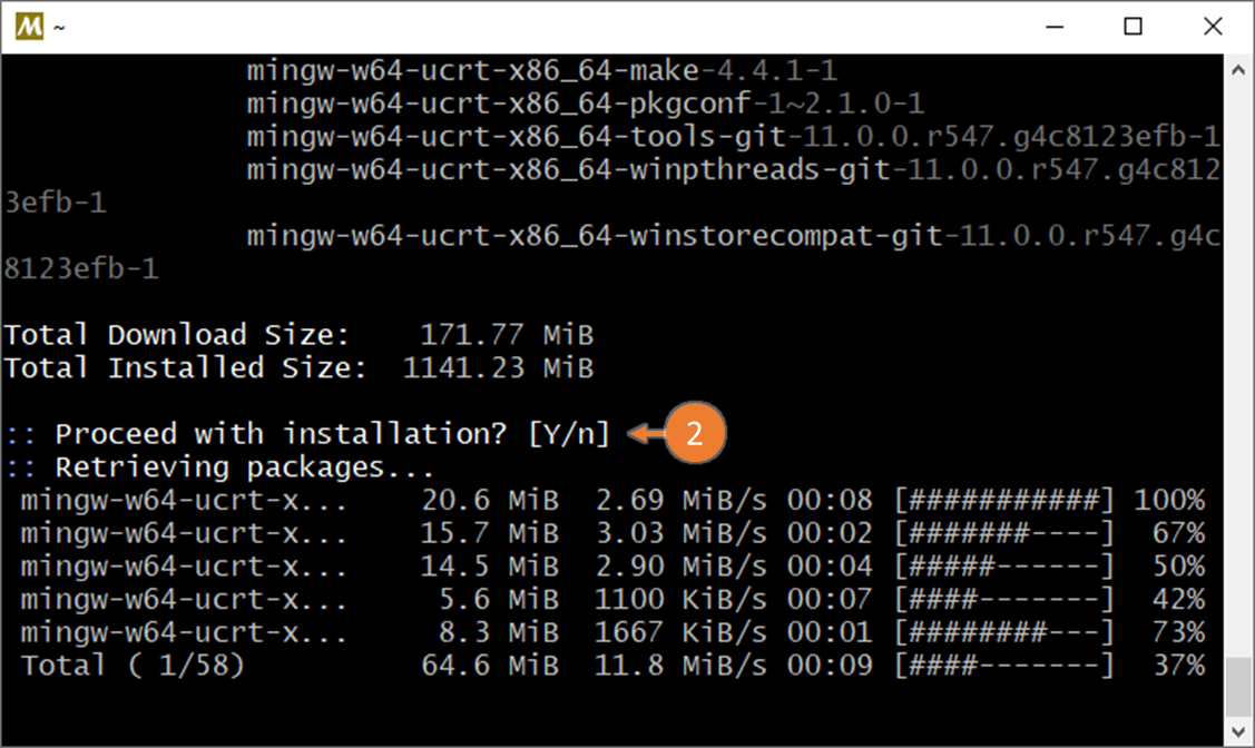 04. MinGW-w64 toolchain을 설치하기 위한 명령어를 입력합니다.