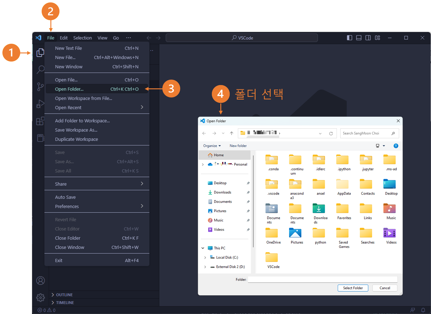 03. VS Code 를 종료하고, 재실행한 뒤 다음 단계를 진행하세요.
