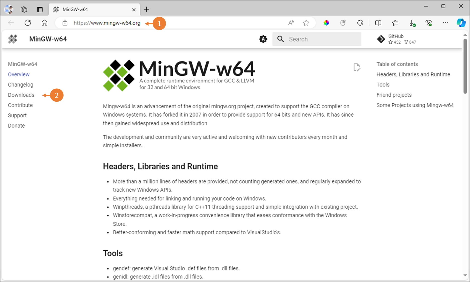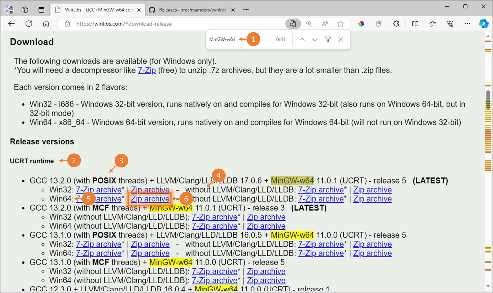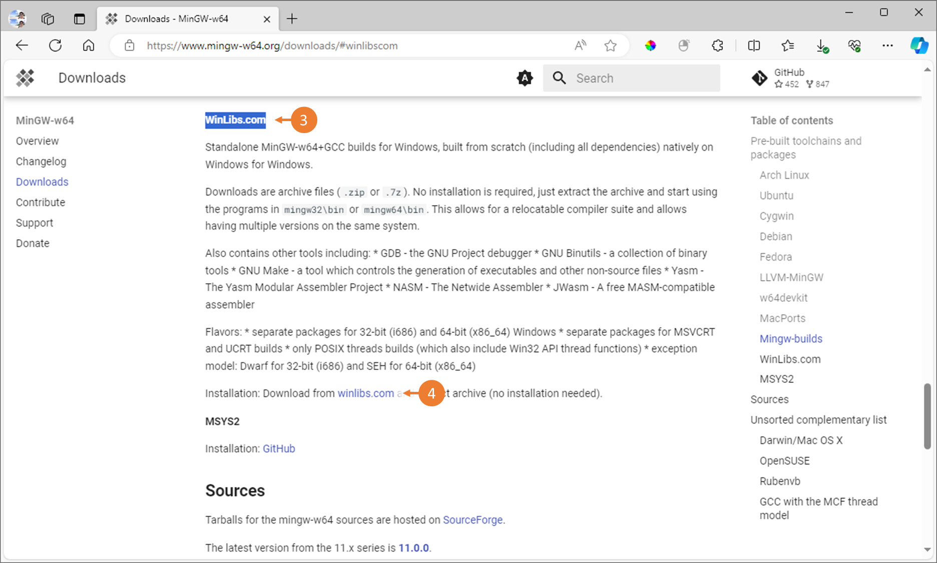 다음 내용은 <MinGW-w64 공식 홈페이지 - winlibs>를 통한 설치 방법입니다.
