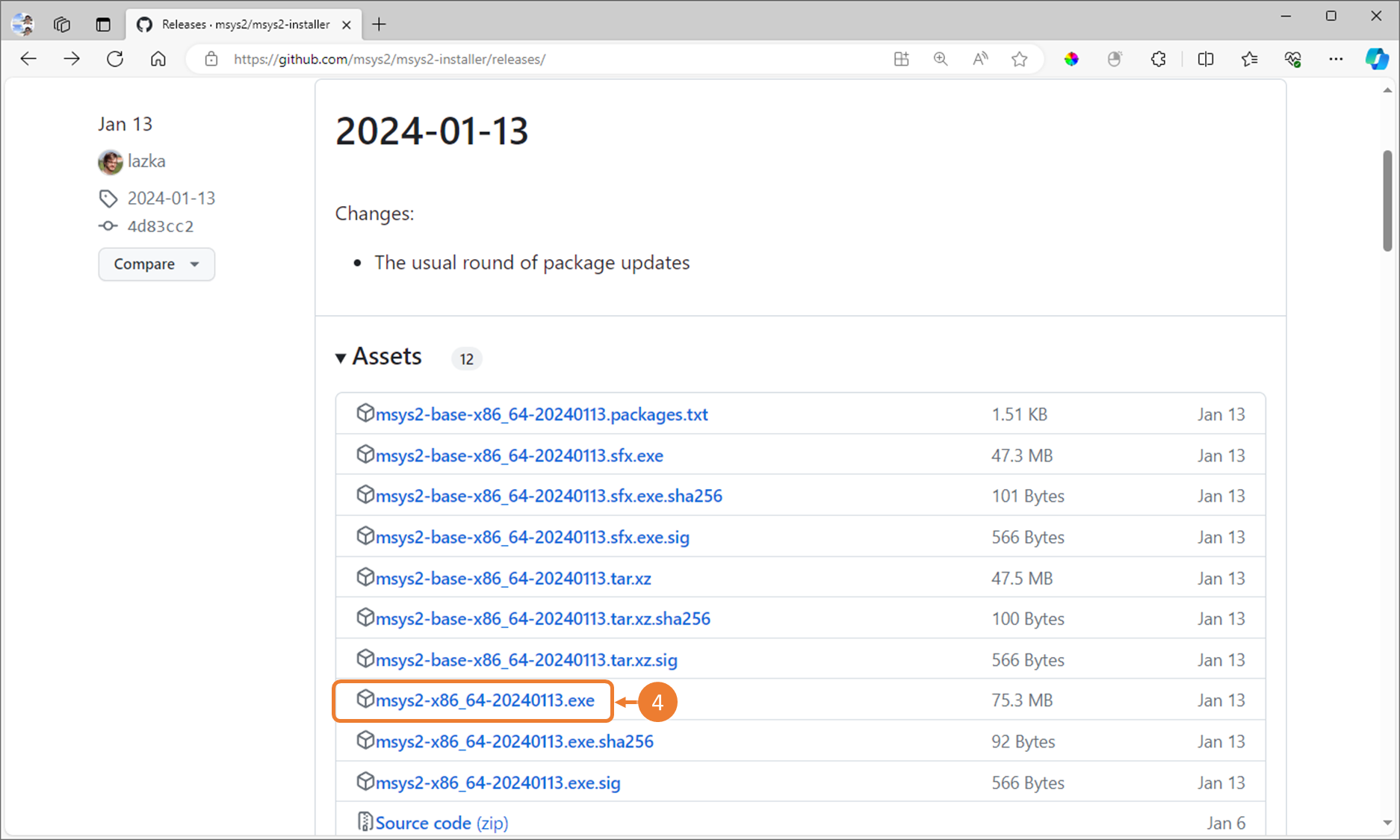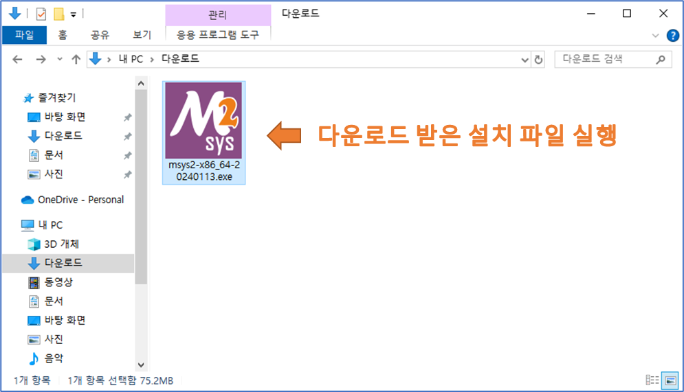 ④ msys2-x86_64-XXXXXXXX.exe 네이밍을 가진 실행 파일을 다운 받습니다.