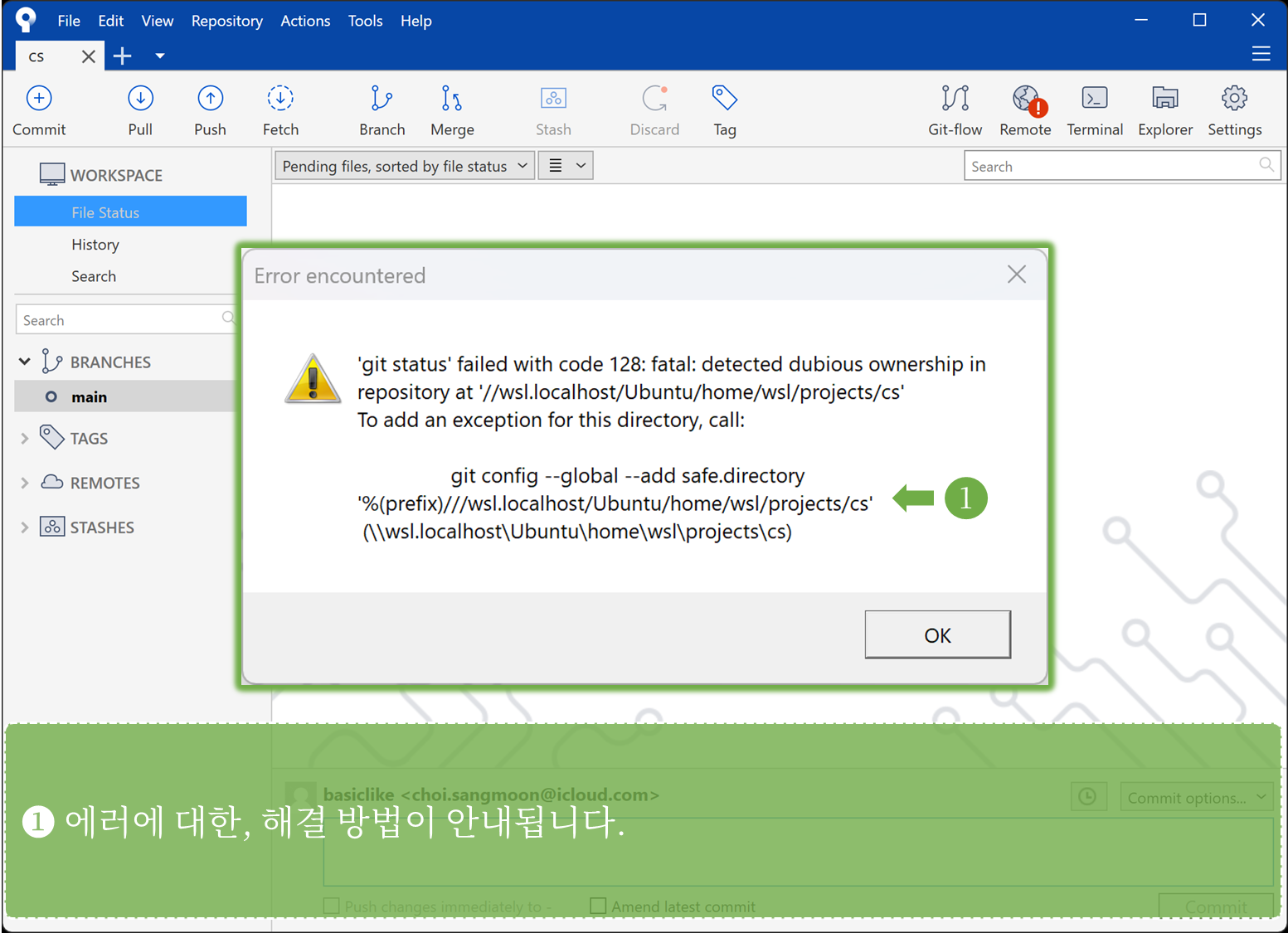 <WSL>SourceTree, failed with code 128 2024.05.24 15:20 C, C++/Setup&Tips 제 경우는, 윈도우11 SourceTree 에서, WSL 프로젝트 경로에 접근시 아래와 같은 에러가 발생했습니다. 공유하기 게시글 관리 BasicLike 댓글 공유하기 다른 글 댓글 이 글 공유하기 구독하기 구독하기 카카오톡 카카오톡 라인 라인 트위터 트위터 Facebook Facebook 카카오스토리 카카오스토리 밴드 밴드 네이버 블로그 네이버 블로그 Pocket Pocket Evernote Evernote 다른 글 문자 인코딩 1 - 인코딩 문자 인코딩 1 - 인코딩 2024.08.22 rand()와 srand() rand()와 srand() 2024.08.13 VSCode, Snippet 환경설정 VSCode, Snippet 환경설정 2024.05.17 <WSL>VSCode, Debug 환경설정 <WSL>VSCode, Debug 환경설정 2024.05.17 다른 글 더 둘러보기