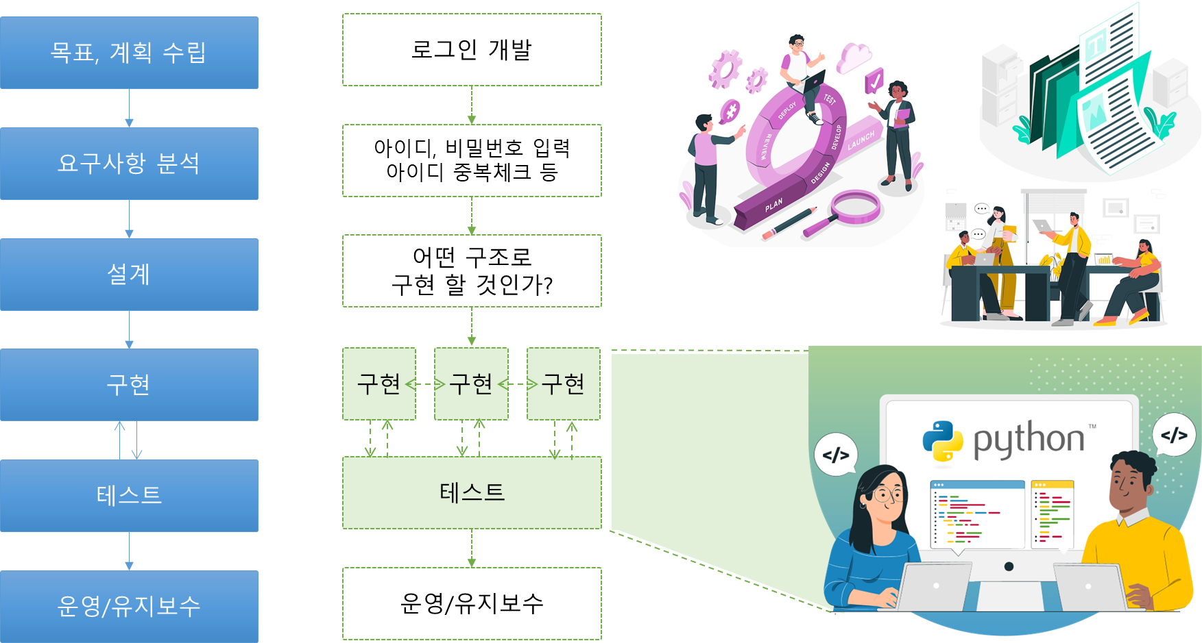 하나의 프로그램이 완성되는 과정은 회의와 협의의 연속이고, 분석과 설계를 비롯한 서류 작업에 많은 비용과 시간, 전문적 기술 지식을 필요로 한다. 프로그래밍 언어를 통한 구현은 프로그램을 만드는 과정에서 중요하지만, S/W 개발 프로세스의 일부분임을 명심해야 한다.