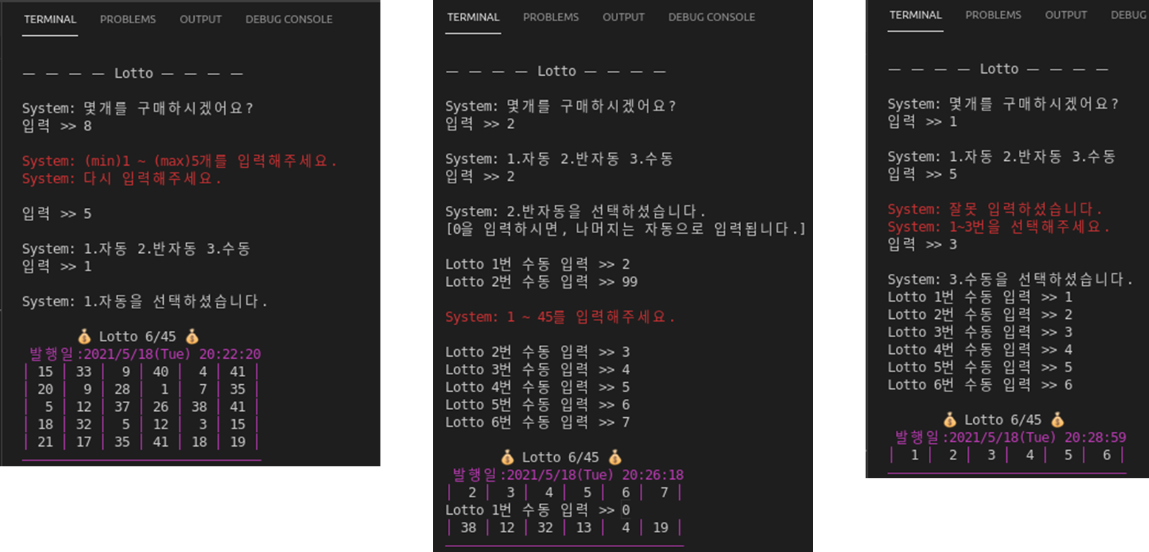 영수증에 발행일시(현재), 추첨일(해당 주 토요일), 지급기한(1년)을 출력하세요.