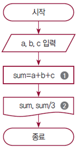 3개의 성적을 입력받아 a, b, c에 저장하고 이들의 합과 평균을 구해 출력한다.