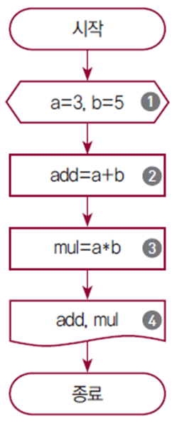 - a 값 3과 b 값 5의 곱인 15를 변수 mul에 저장한다.