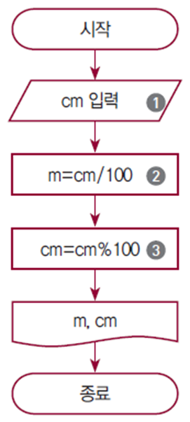 - cm를 100으로 나눈 몫을 m에 저장한다.