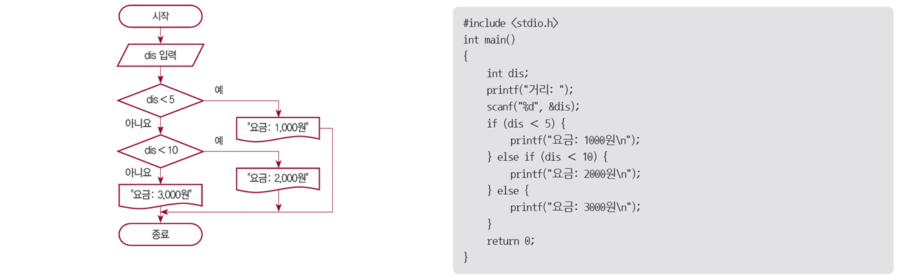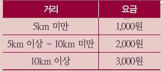 다음과 같은 요금 체계에 대해 거리에 따른 요금을 출력하는 순서도와 C 프로그램을 작성하여라.