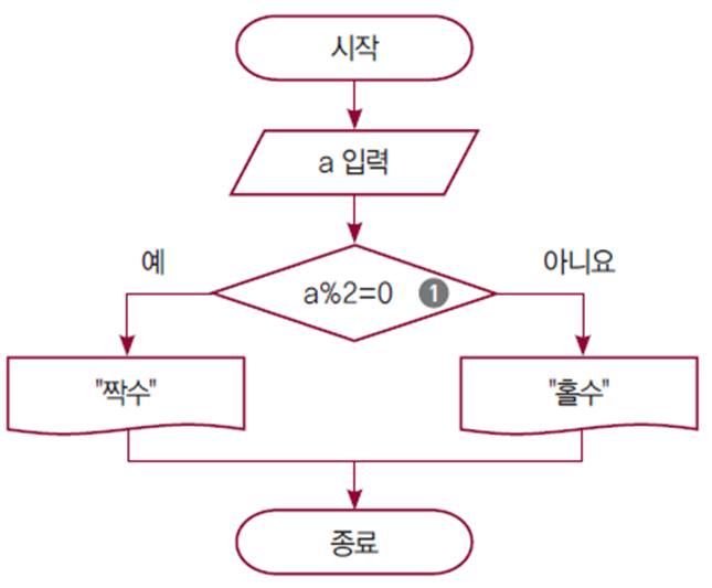 사용자로부터 입력받은 수를 2로 나누었을 때 나머지가 0이면 ‘짝수’, 나머지가 0이 아니면 ‘홀수’다. 예를 들어 입력받은 수가 10이라면 2로 나누었을 때 나머지가 0이 된다. 따라서 10은 ‘짝수’가 된다. 만약 입력받은 수가 15라면 2로 나누었을 때 나머지가 1이 되어0이 아니므로 15는 ‘홀수’가 된다.