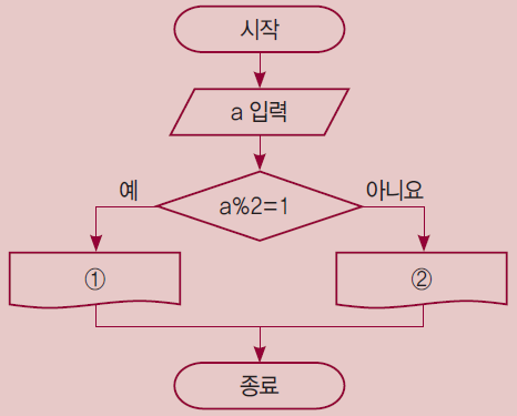 홀수, 짝수를 판별하는 다음 순서도의 ①과 ②를 채우고 그에 맞는 C 프로그램을 작성하여라.