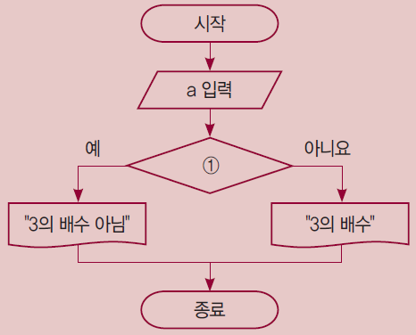 3의 배수를 판별하는 다음 순서도의 ①을 채우고 C 프로그램을 작성하여라.