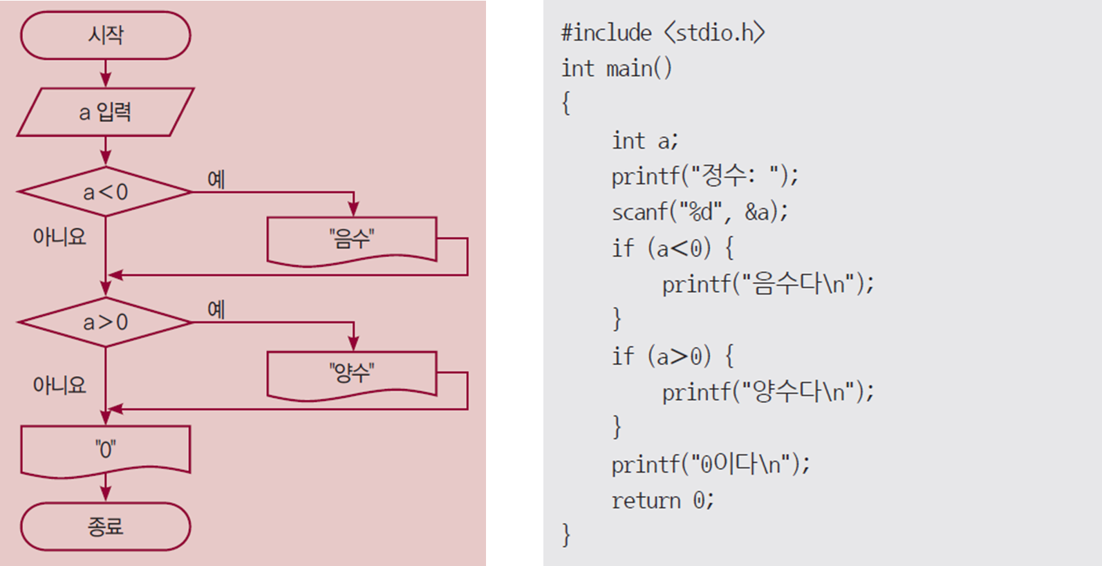 printf("음수"); // a<0이 참이면 “음수”를 출력한다.