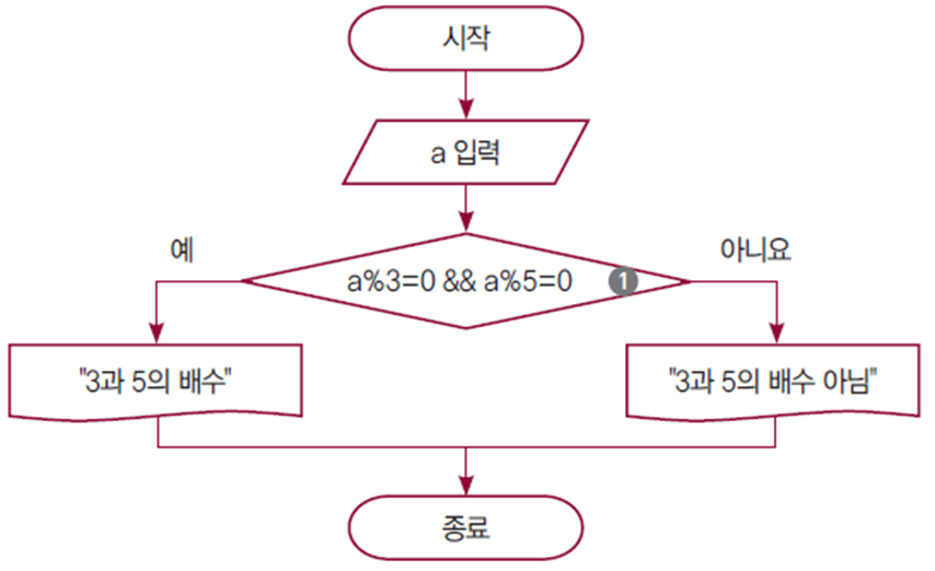 printf("3과 5의 배수\n"); // a를 3으로 나눈 나머지가 0이고 a를 5로 나눈 나머지도 0이면 “3과 5의 배수”를 출력한다.