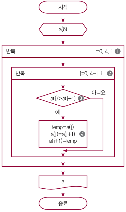 - a[j]가 a[j+1]보다 큰지 판별한다.