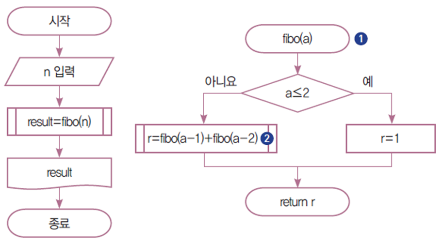 - 피보나치수열의 a번째 항을 구하는 fibo 함수를 정의한다.