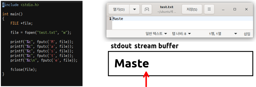 fputs( )는 개행 문자('\n') 추가하지 않고, 출력한다.