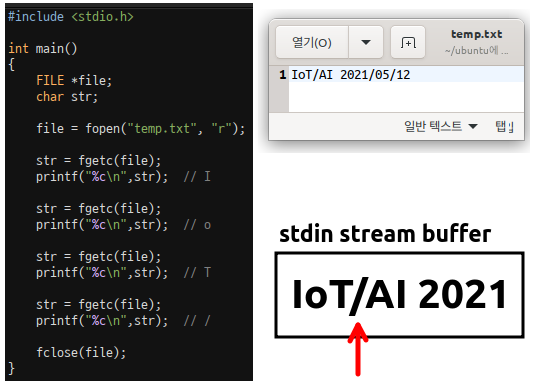 5. 지정 스트림, 임의 배열 버퍼 사용, 입력 크기 제한 있음, 개행 포함, 널 추가 - fgets( ), fputs( )