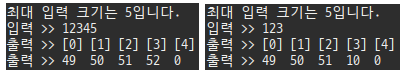 printf("출력 >> %d %d %d %d %d\n", buf[0], buf[1], buf[2], buf[3], buf[4]);