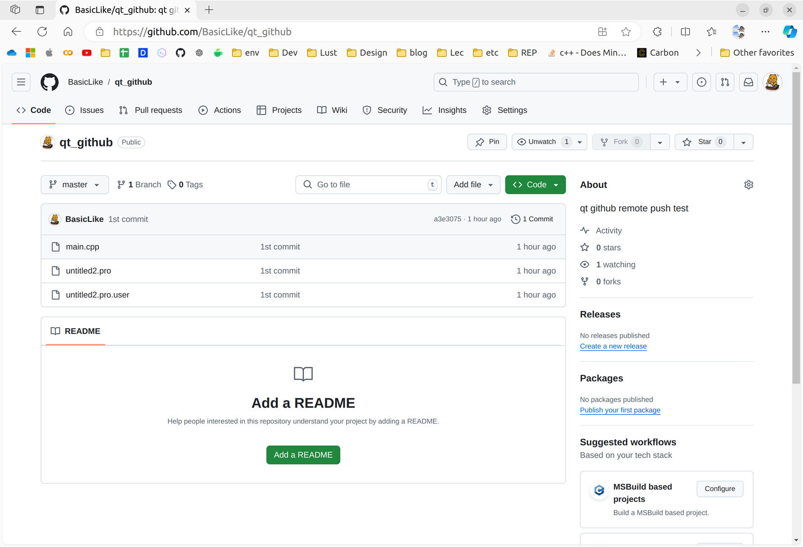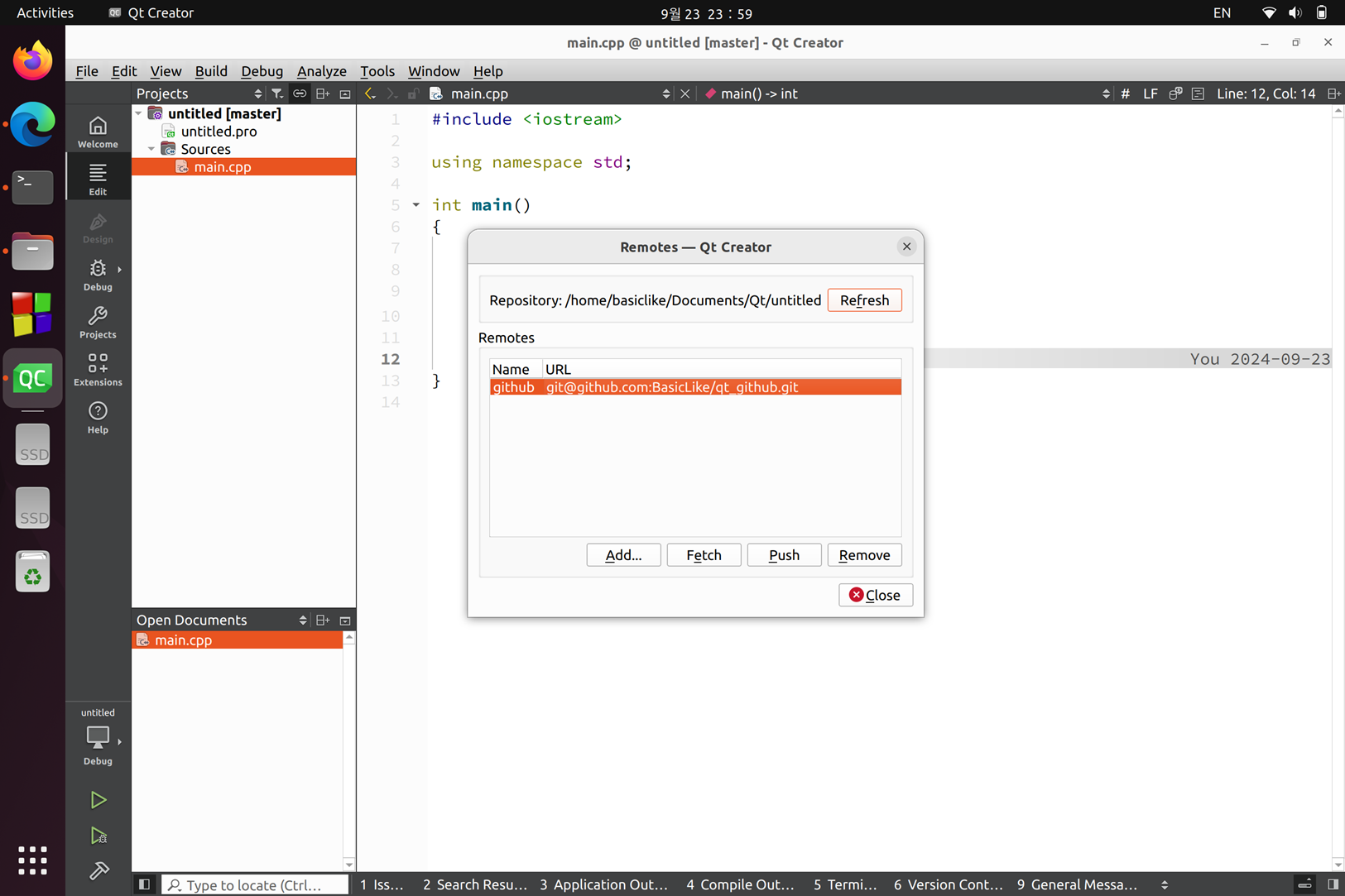 Qt Creator 에서는, GitHub 원격저장소에 최초 브랜치 설정이 안된다.