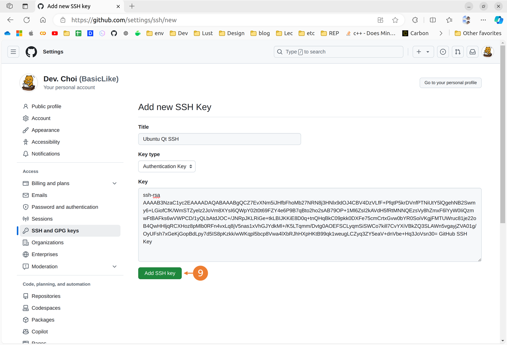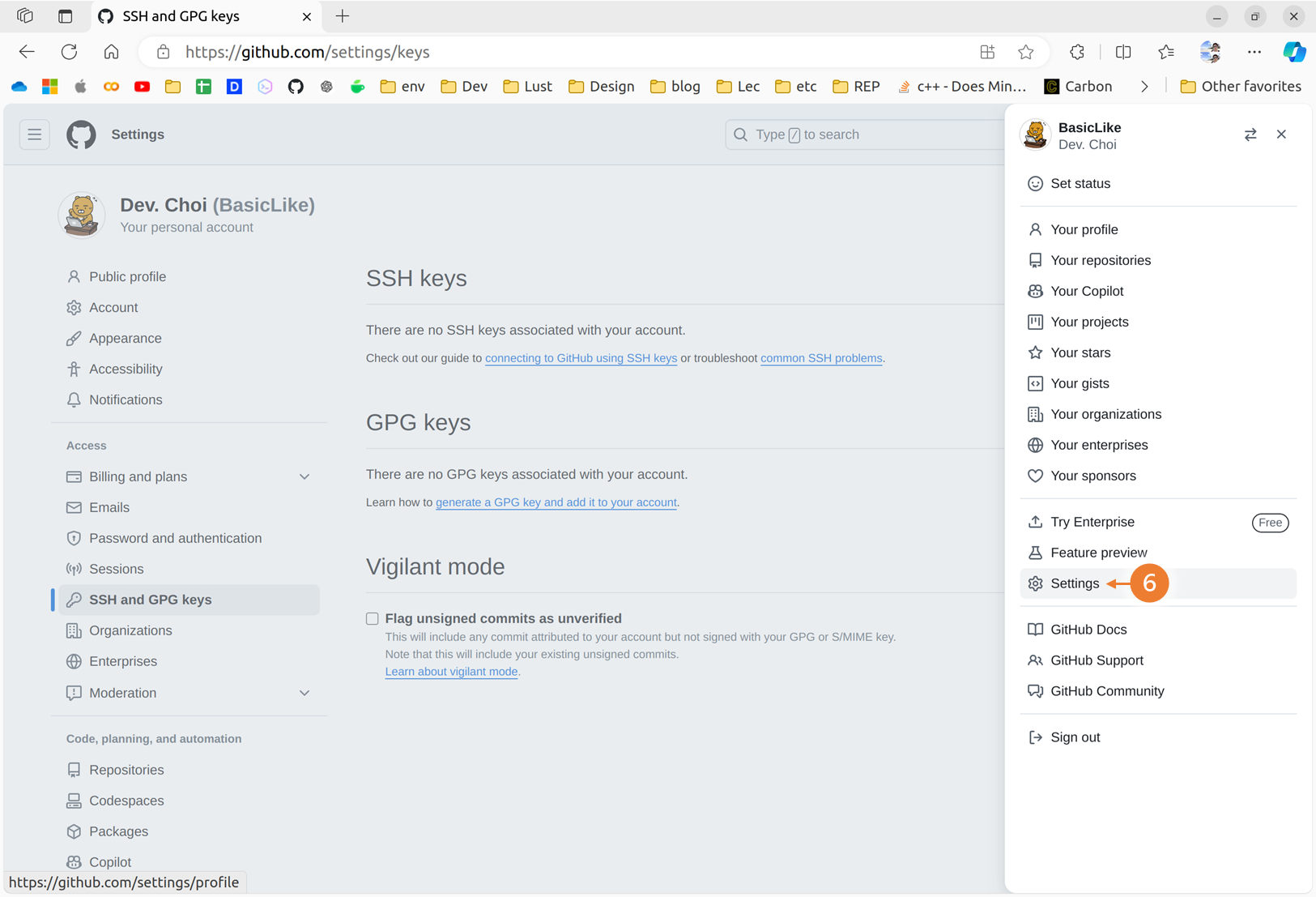 내 로컬 컴퓨터의 SSH Key 를 생성하여, 깃허브의 내 계정에 등록해야 합니다.