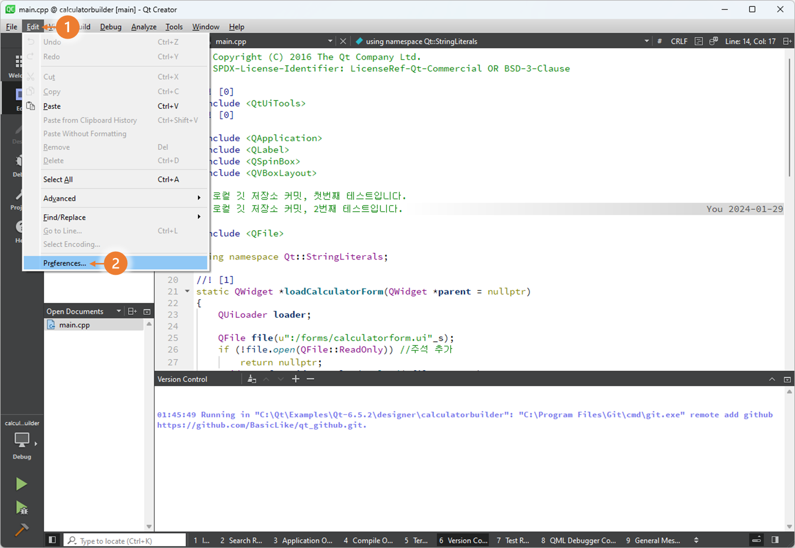 Qt Creator에서 Git 저장 후, GitHub 업로드 방법만 간단히 요약합니다.
