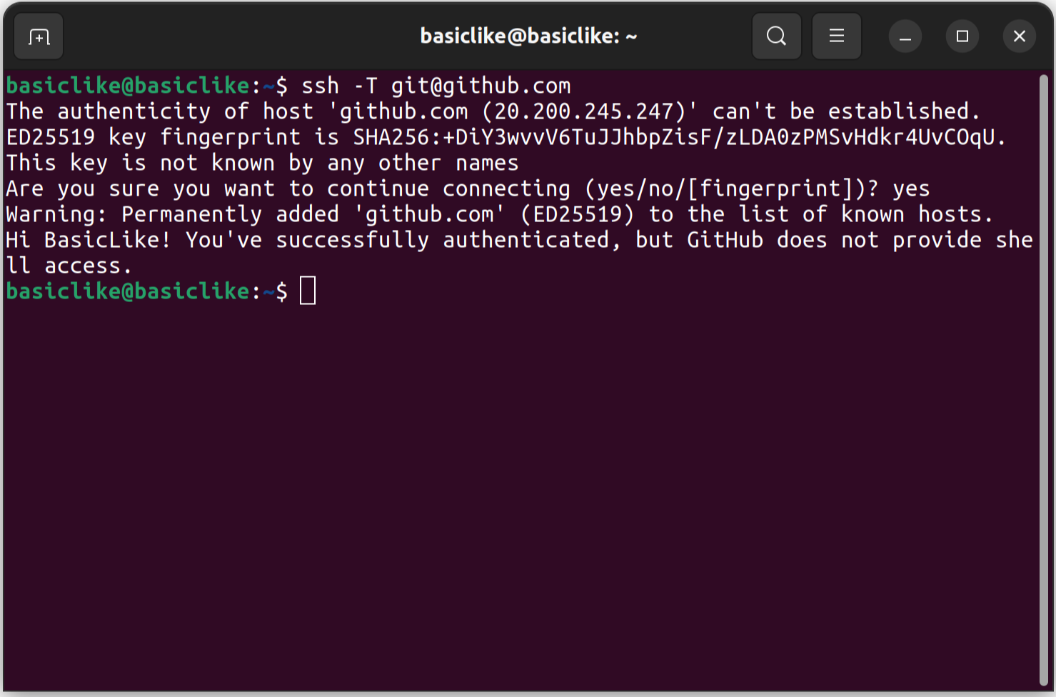 GitHub에 등록한 ssh 키 기반으로, GitHub 연동 확인