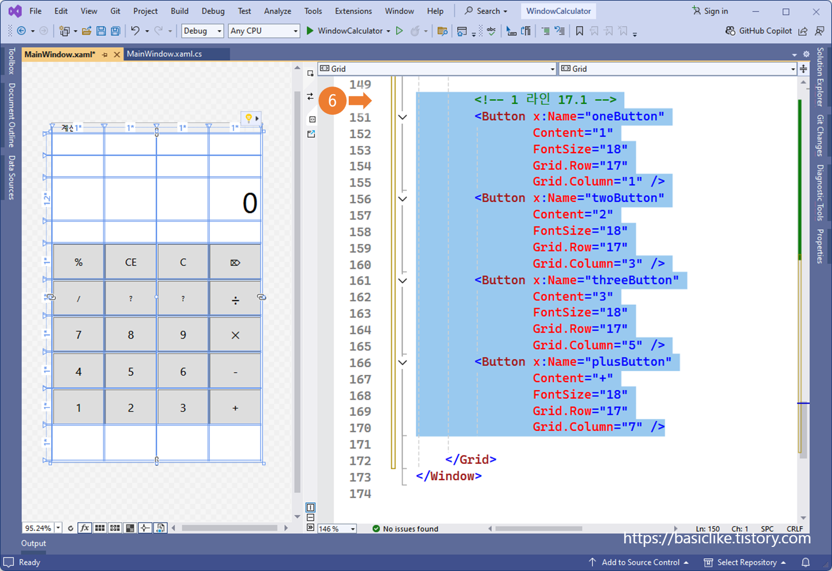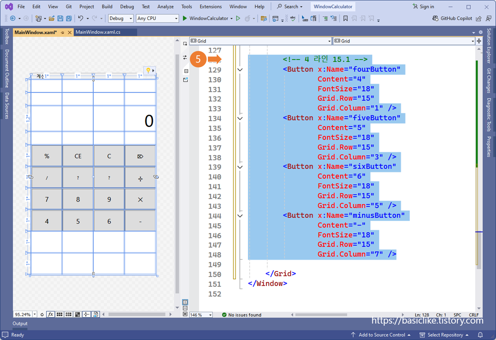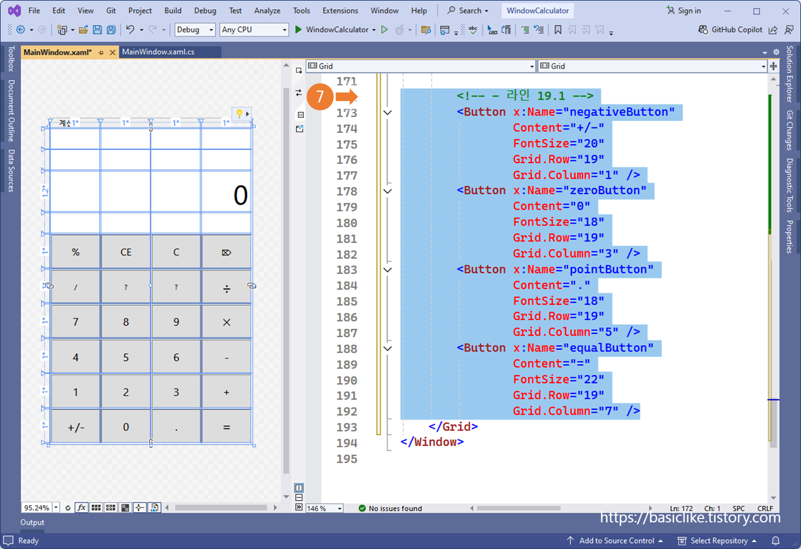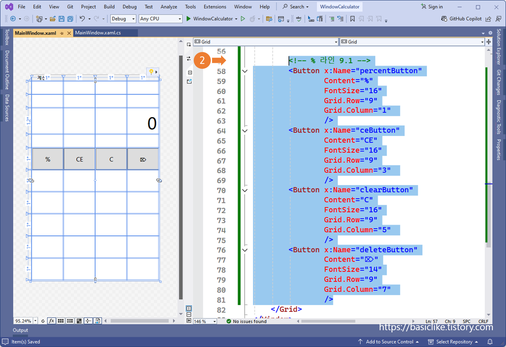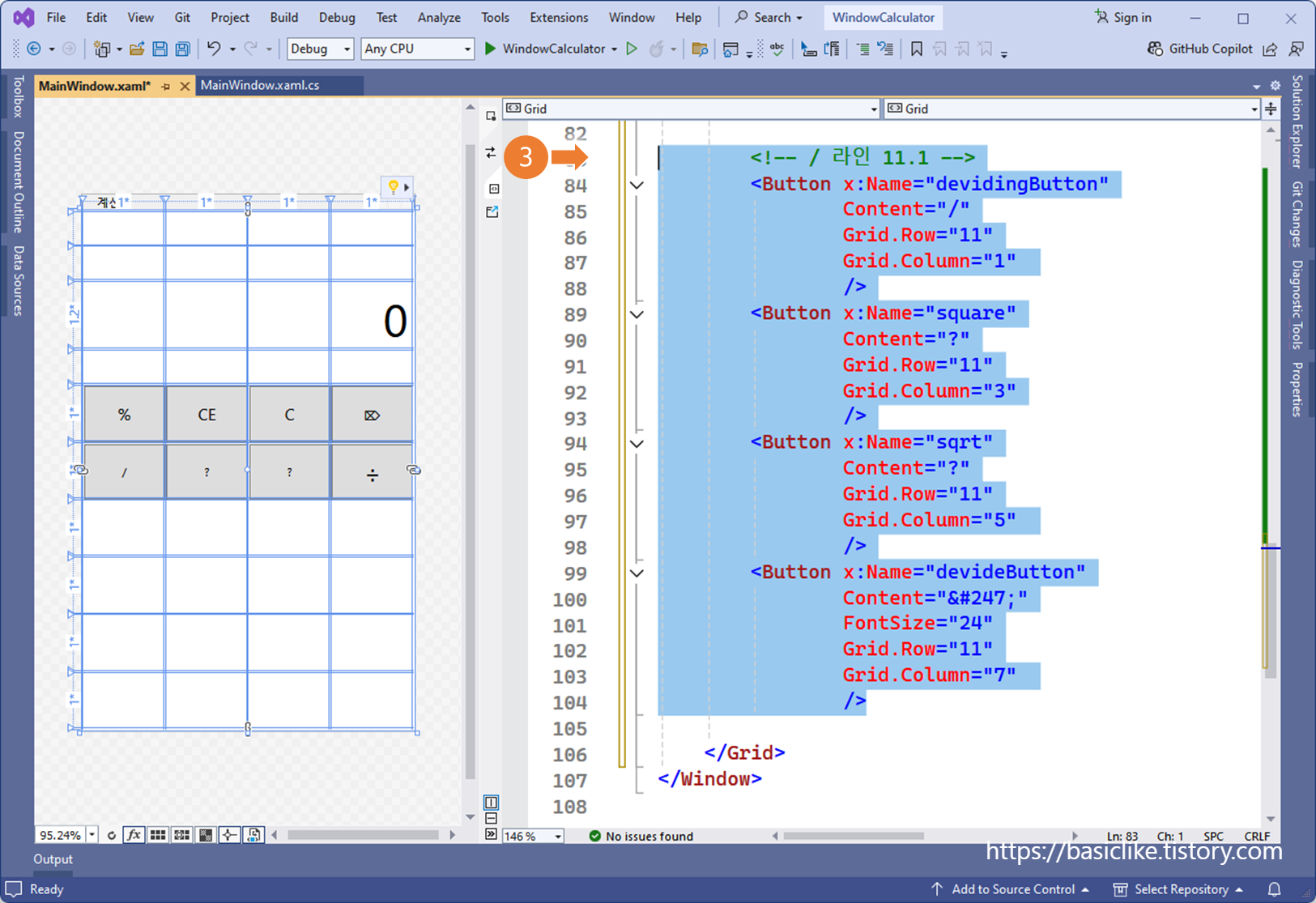 ❶ README에서 확인한 것처럼 XAML 디자이너의 상단의 Window 태그에 추가 설치한 패키지를 참조시켜 줍니다.