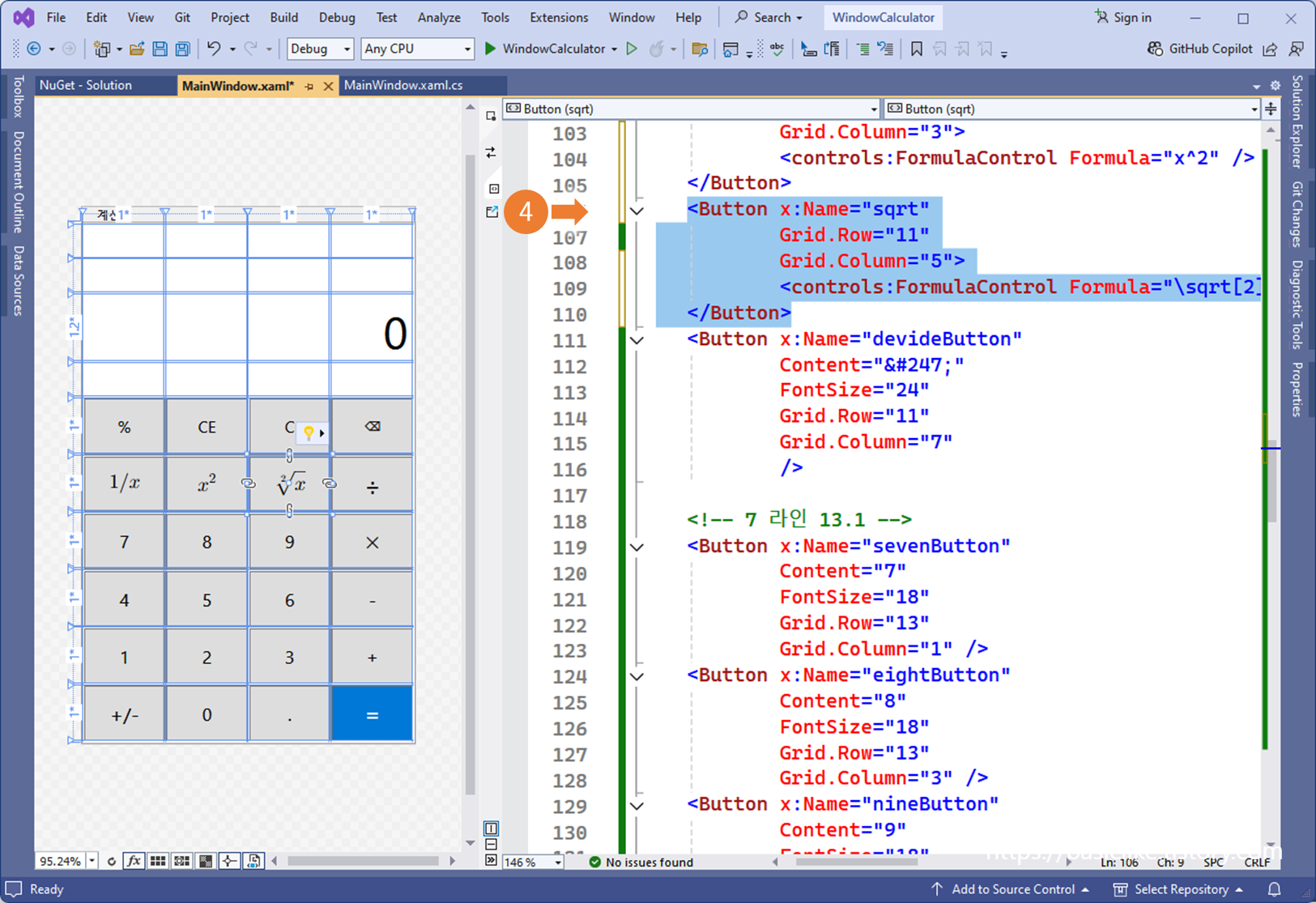 ③ WPF-Math GitHub 의 README 에서 wpf Math 컨트롤 태그를 사용법에 맞게 추가해야 합니다.
