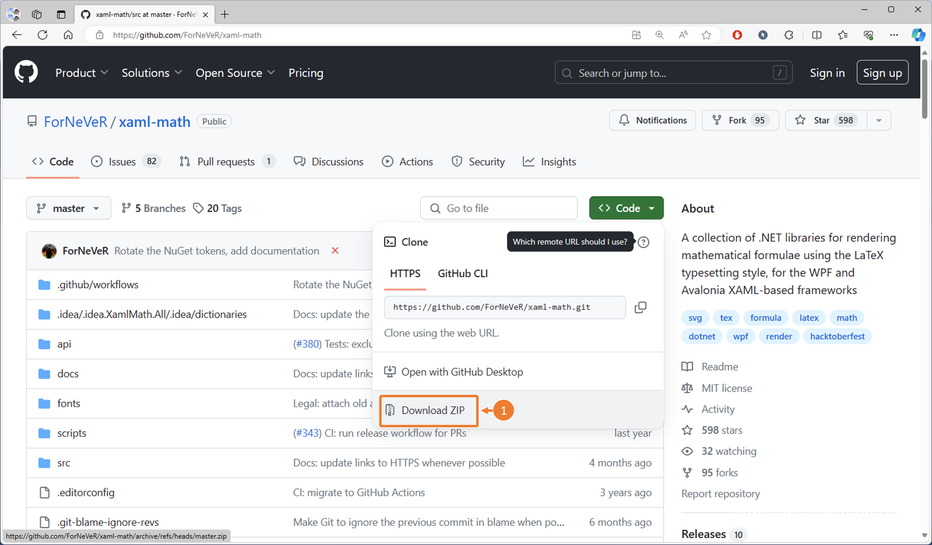 ① WPF-Math GitHub 의 README 에서 wpf Math 컨트롤 태그 사용 방법에서 ① WPF 사용법에