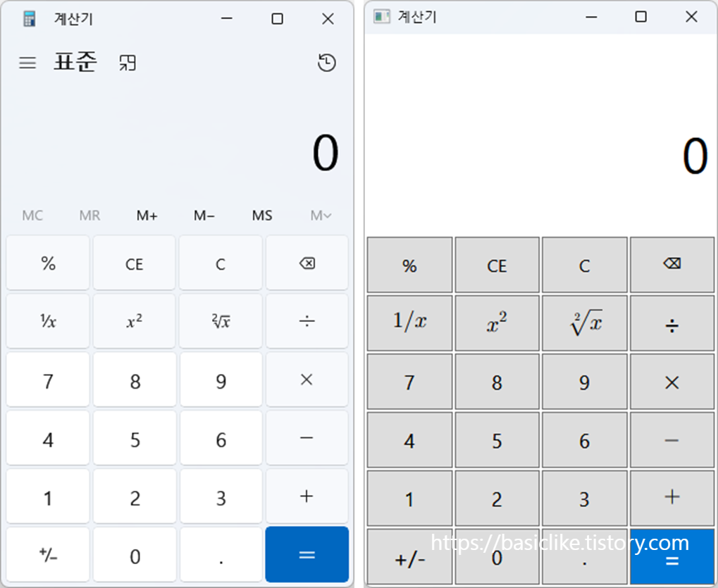 ❶ 윈도우 계산기의 등호 아이콘은 배경색이 푸른색이다.
