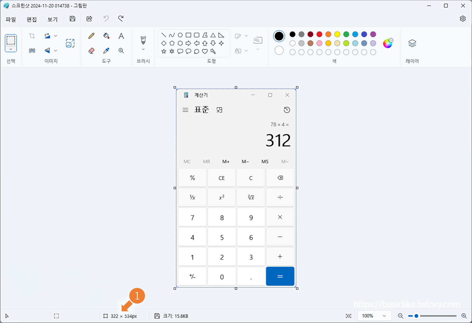 "윈도우 계산기 스크린샷" 을, 그림판으로 확안하면