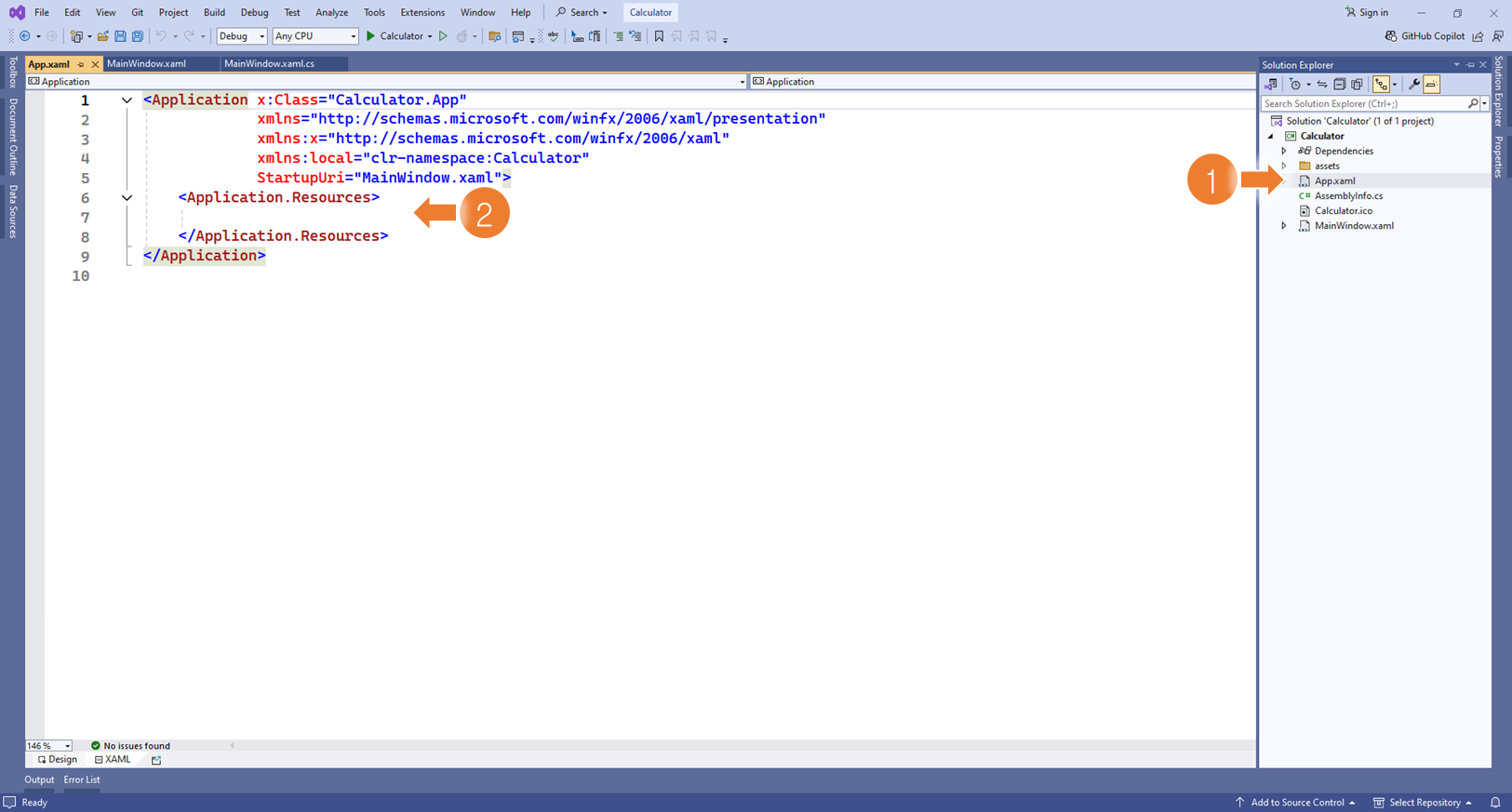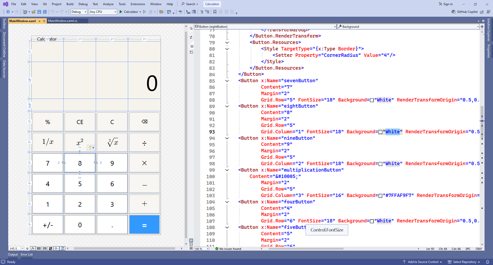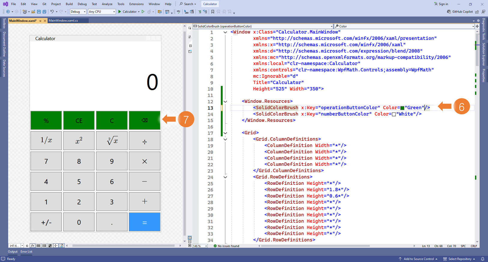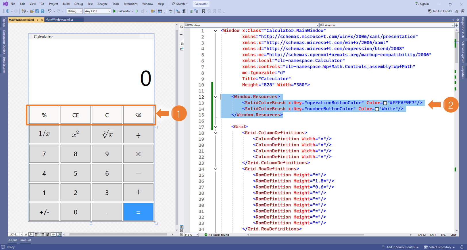 ❺ 자동으로 XAML에 버튼 컨트롤의 Backgroud 속성에 반영된다.