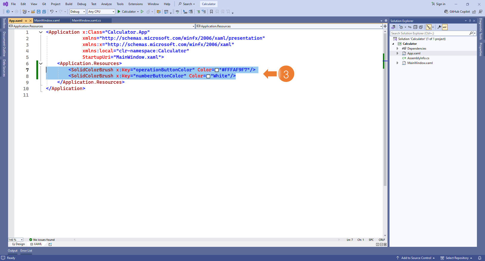 ❹ MenuHighlightBrushKey 색을 고르고 저장하면, 자동으로 XAML에 반영된다.
