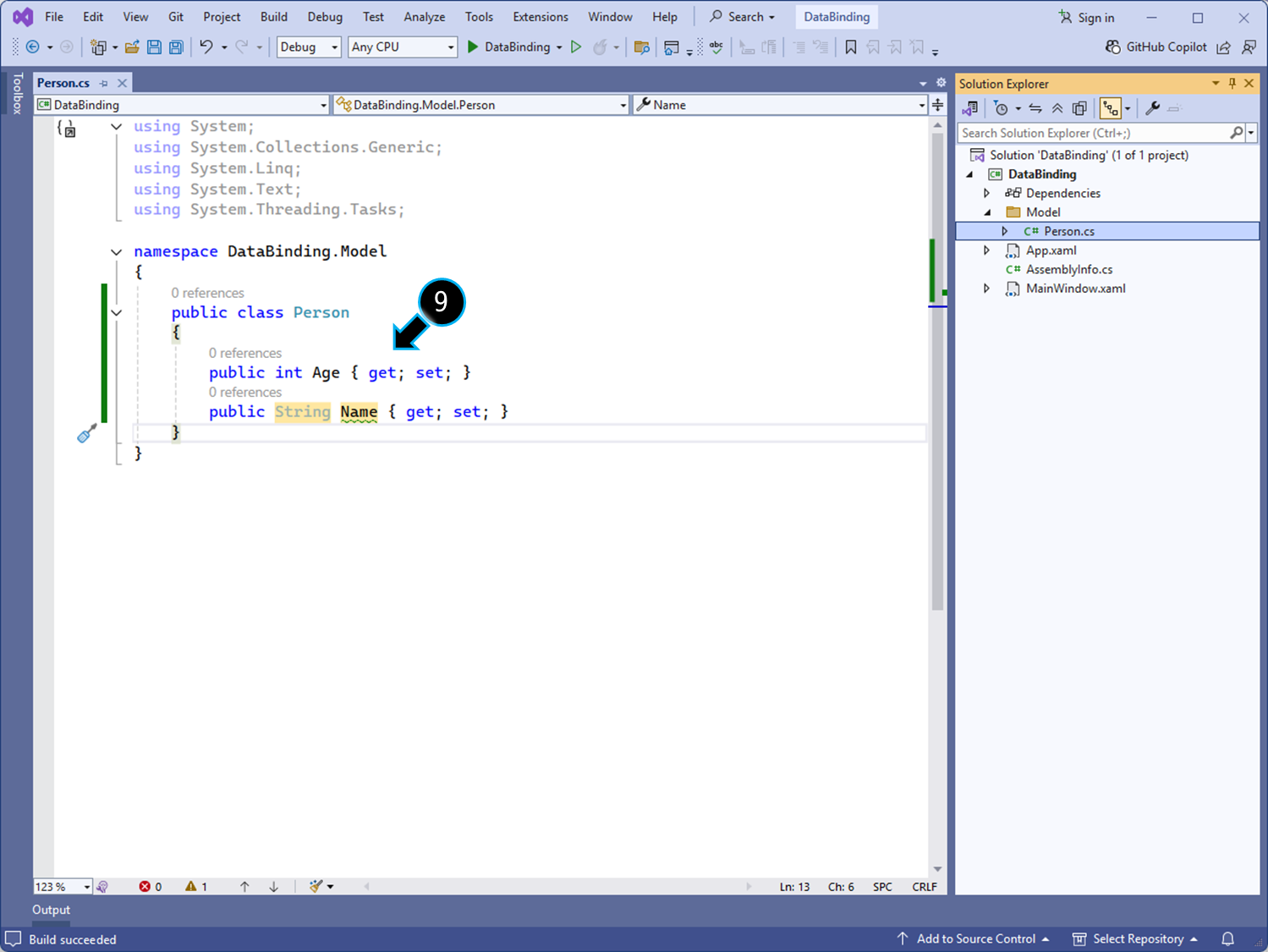 WPF UI 는 Person 객체의 Age, Name 요소의 값을 1)가져오거나, 2)할당(변경)할 때,