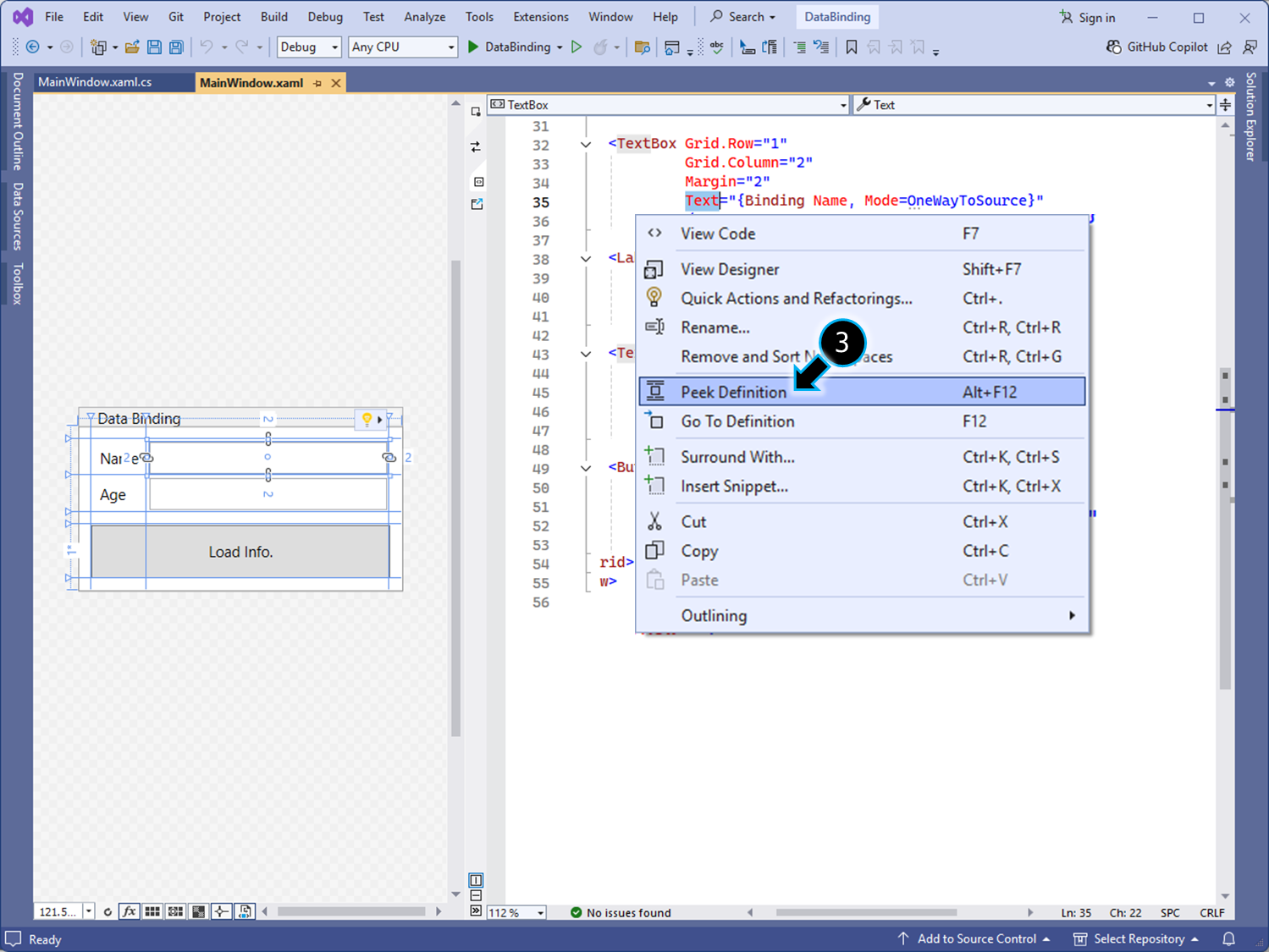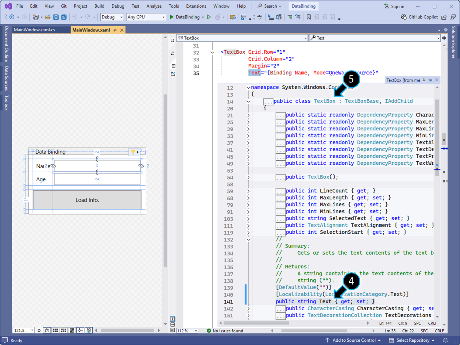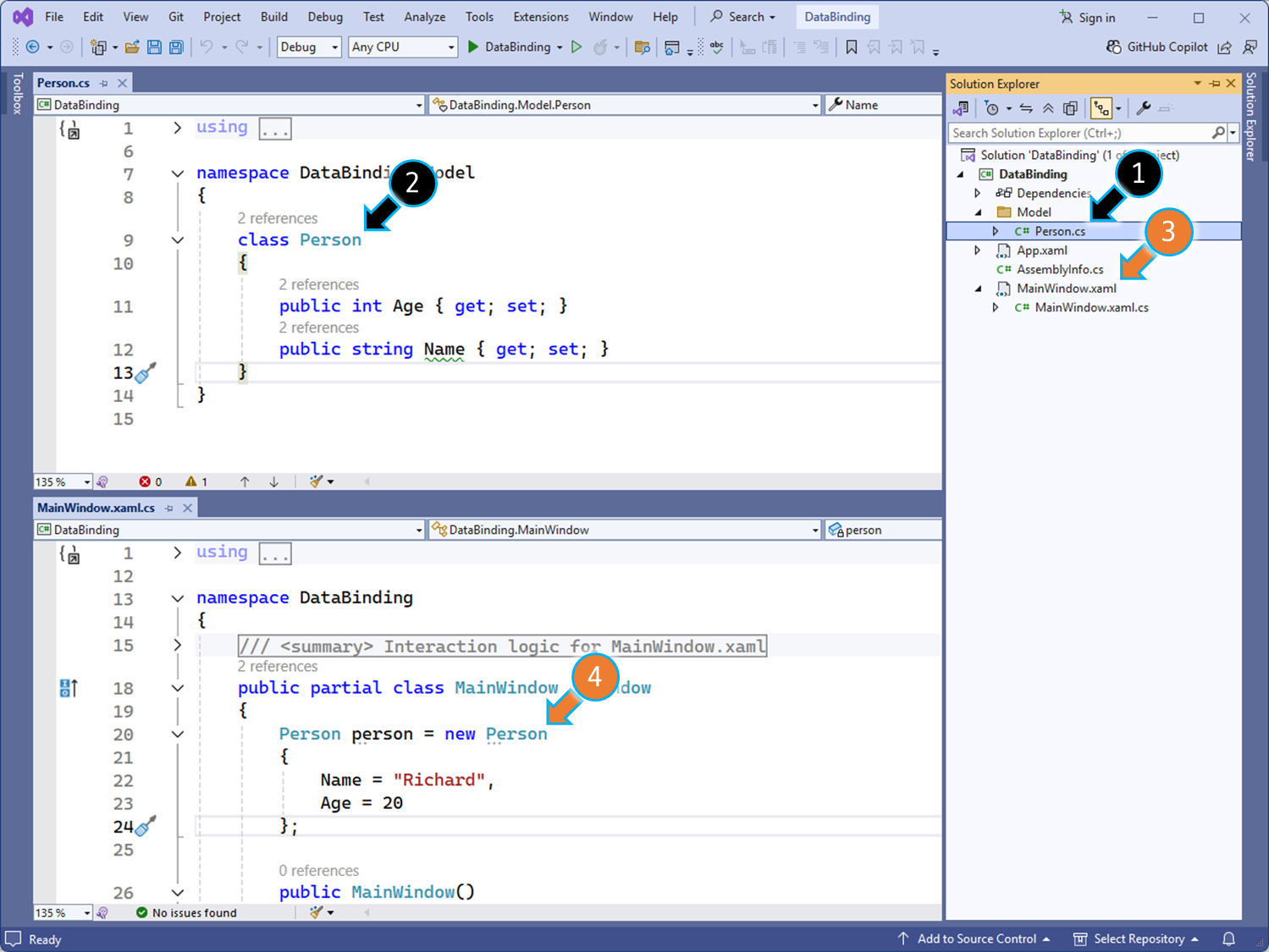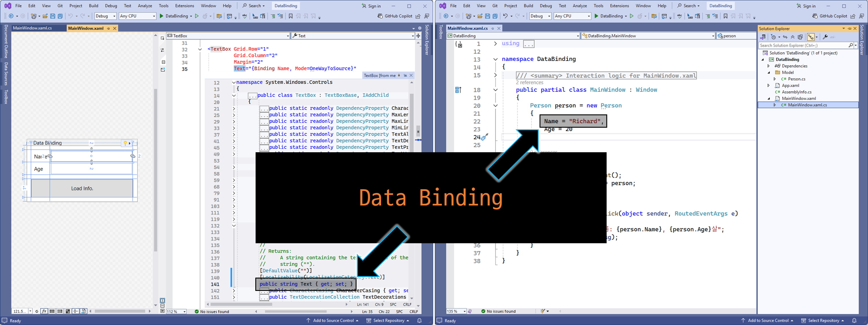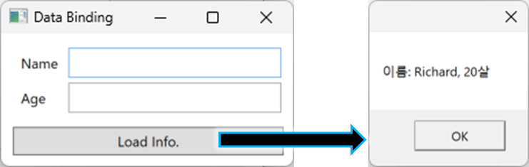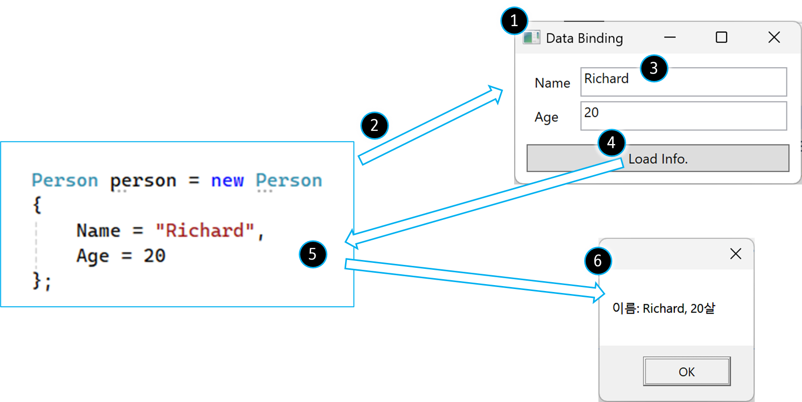>> [ TextBlock 객체의 Text 데이터]와, [ person 객체의 Name, Age 데이터] 를 묶는다.