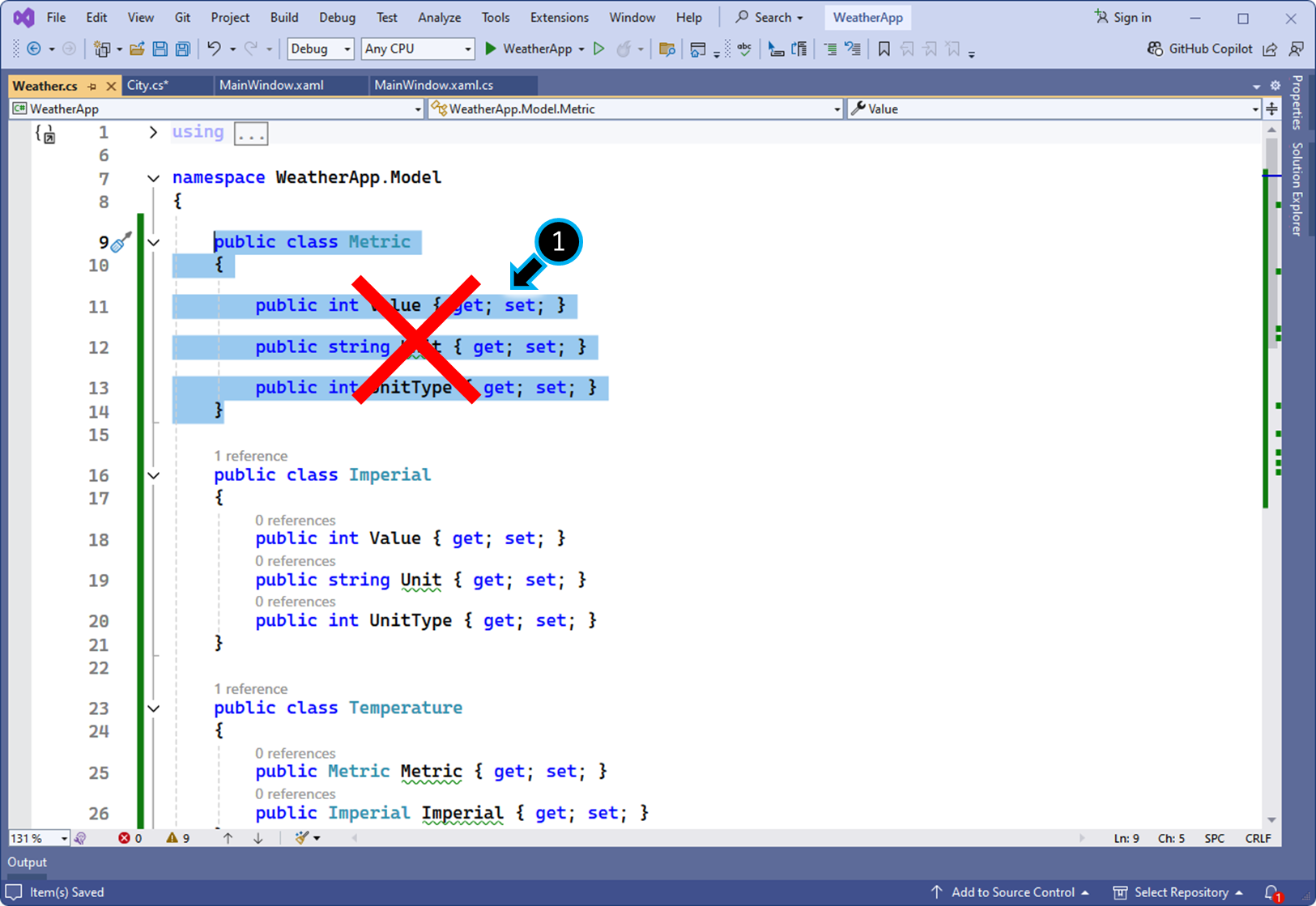 ⑥ Json 에서 변환한 City 클래스 C# 코드를 복사합니다.