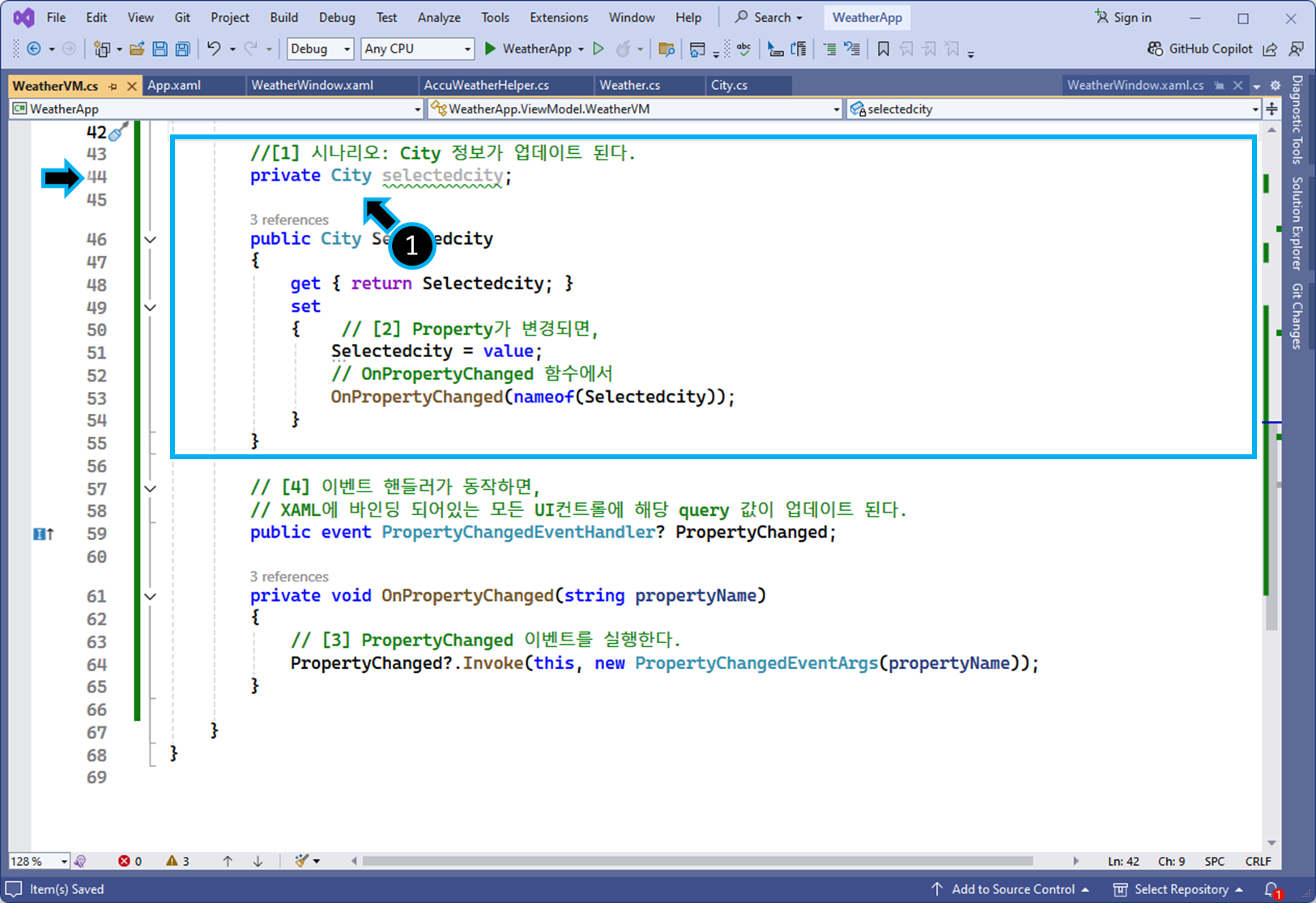 06.2 WeatherVM.cs 클래스에, selectedCity 객체를 생성