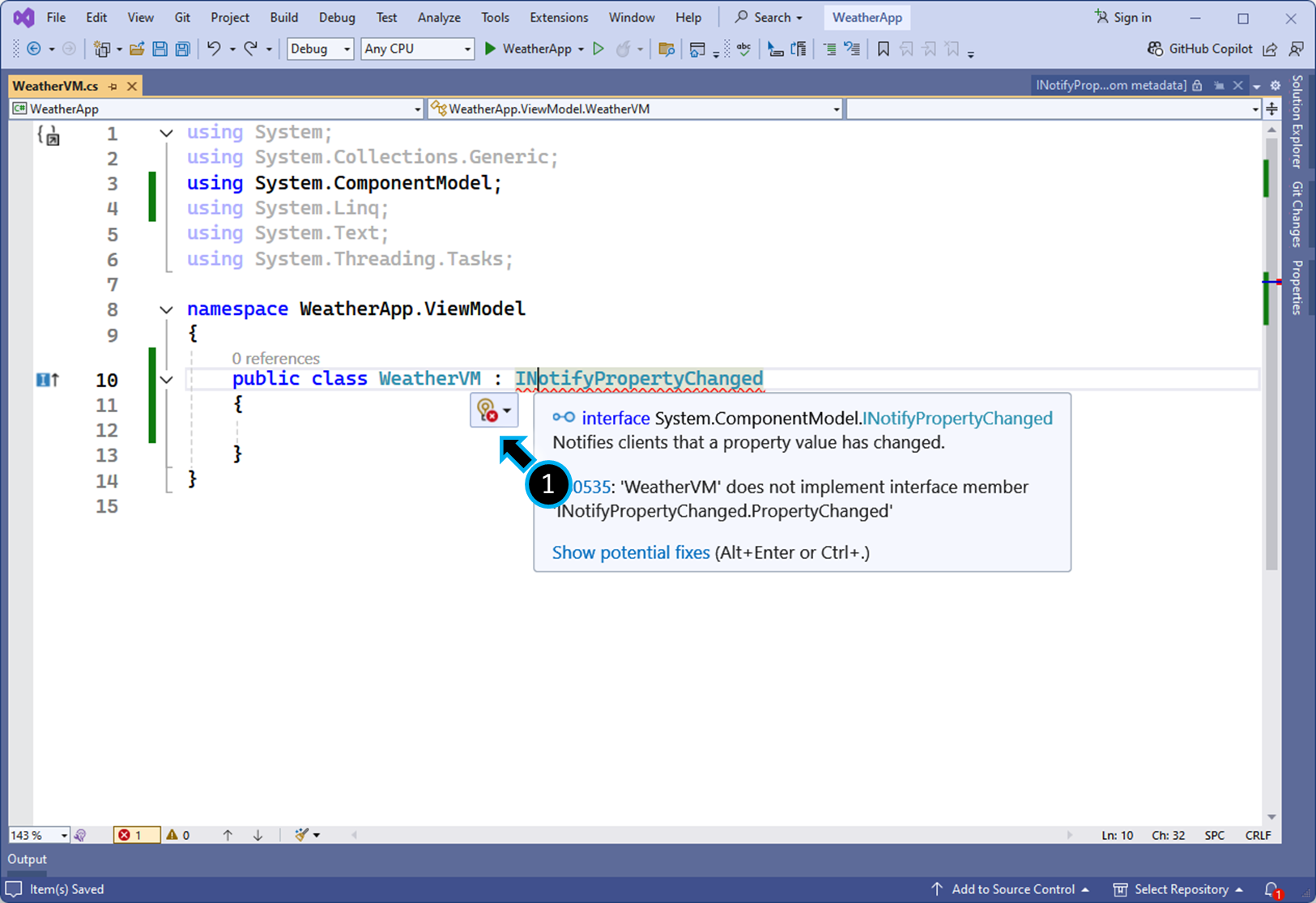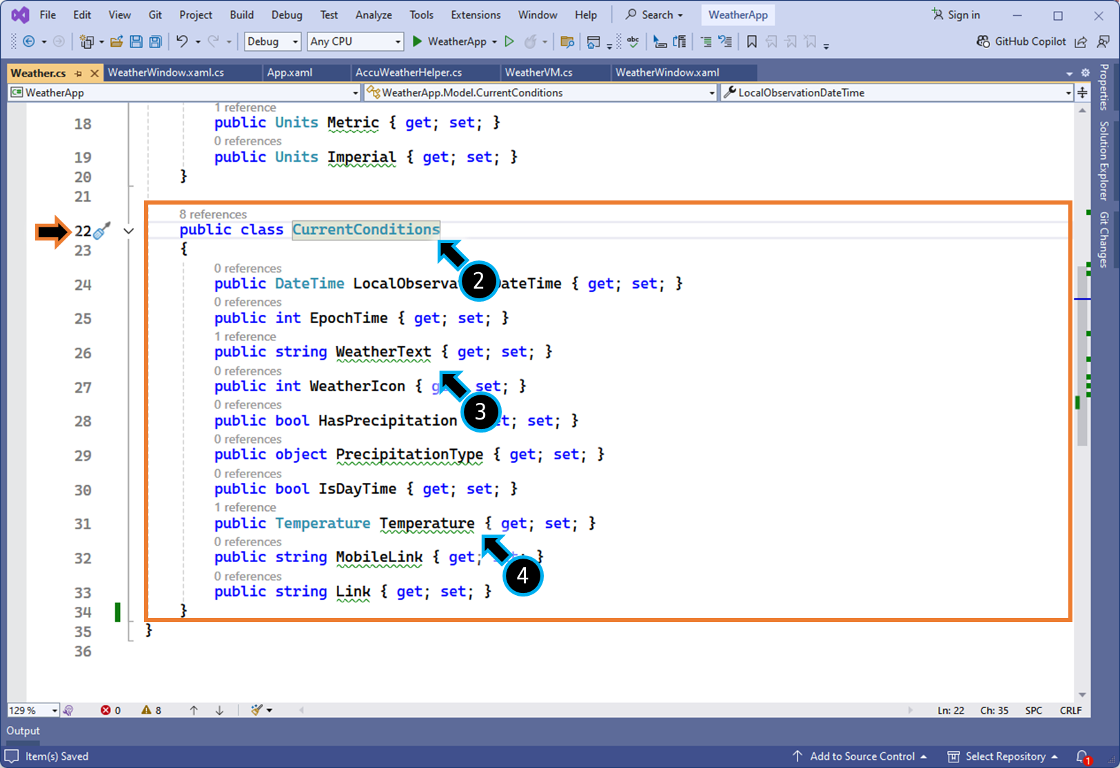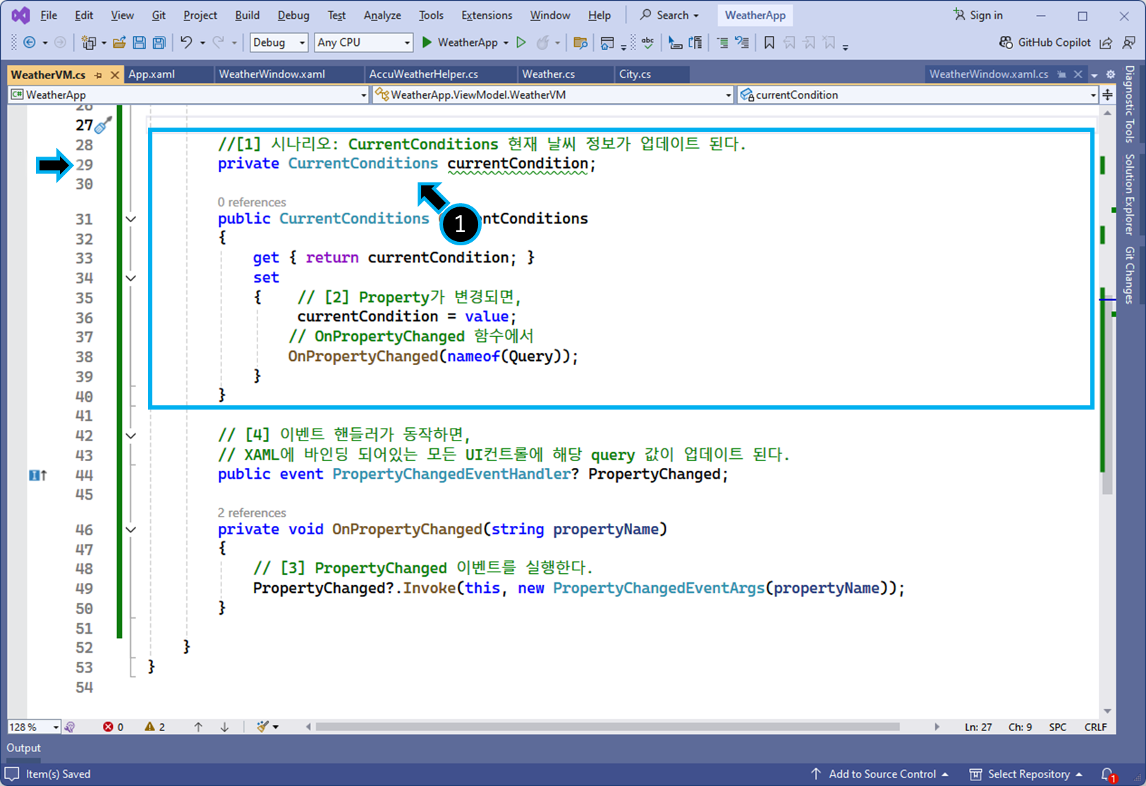 05.2 WeatherVM.cs 클래스에, CurrentConditions 프로퍼티 구현