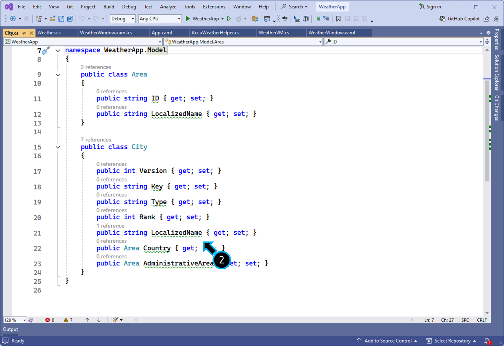 Model의 City 클래스는 LocalizedName 필드를 가지고 있습니다.