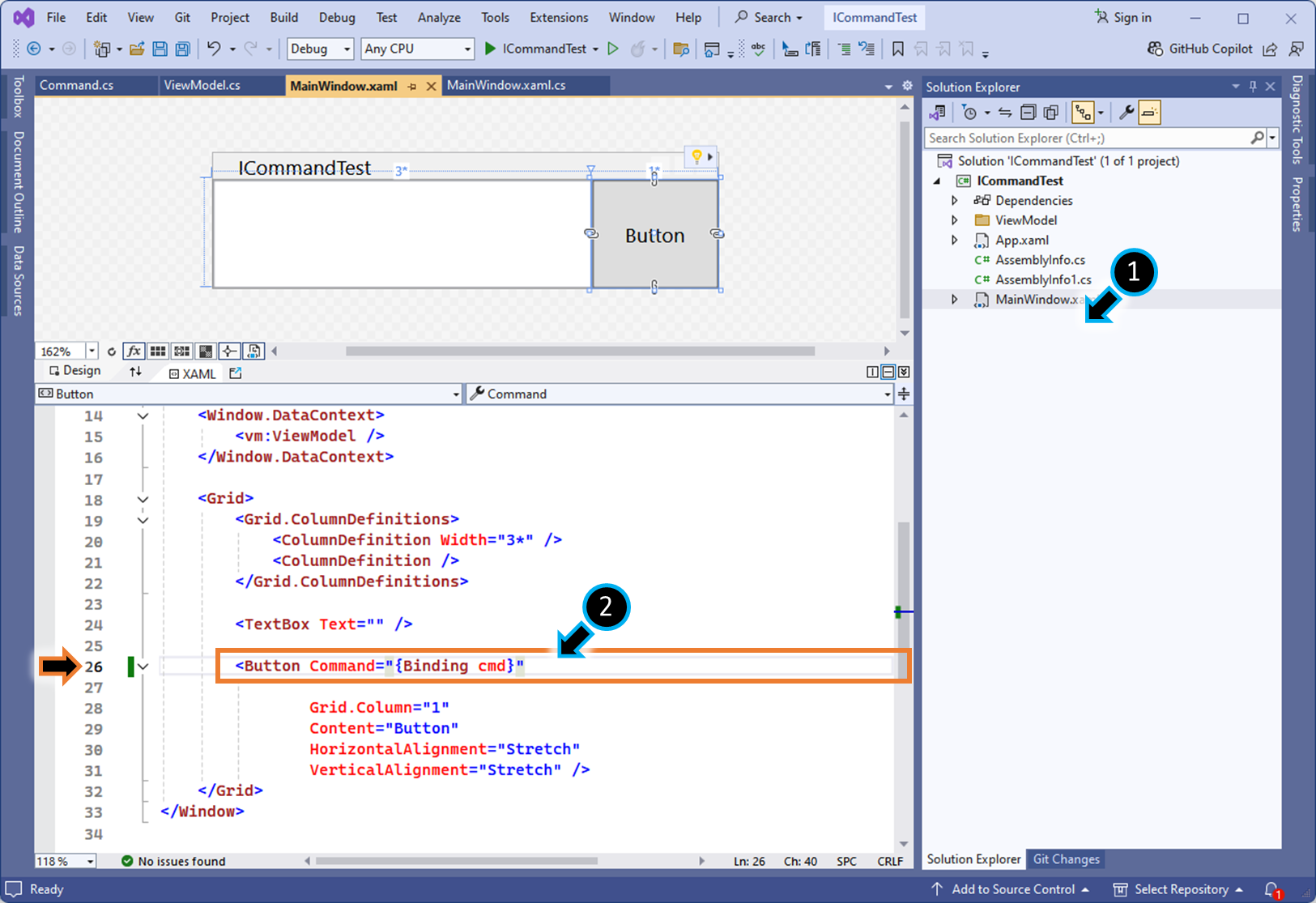 (2) View에 ICommand 구현체인 cmd를 바인딩 합니다.