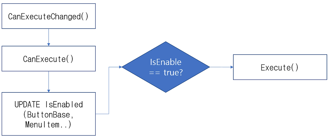 사용자명령이 발생하면 IsEnable이 true로 활성화된 컨트롤은 Execute에 정의된 동작이 실행됩니다.