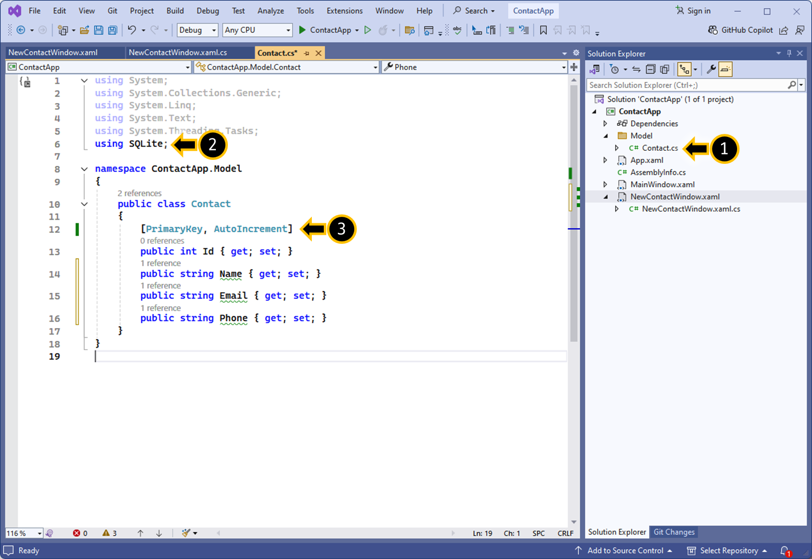 // Contact 클래스 정의를 기반으로 SQLite DB Table 생성 (테이블이 없을 경우, 있으면 X)