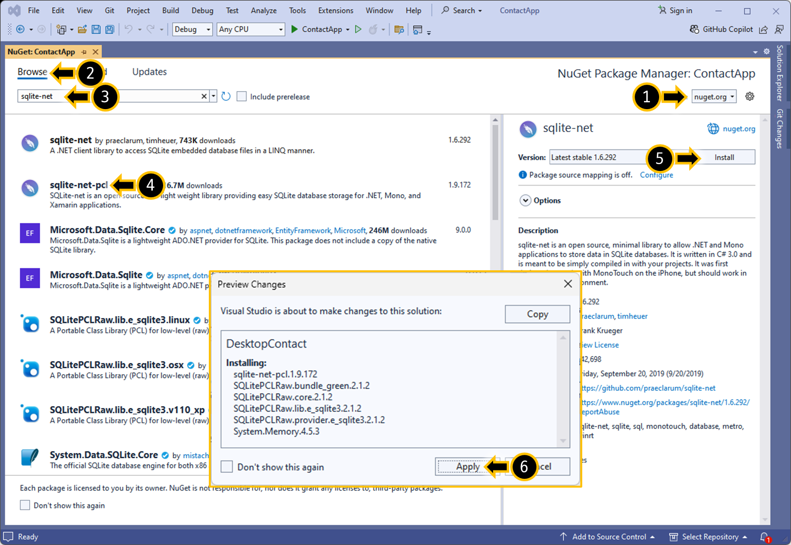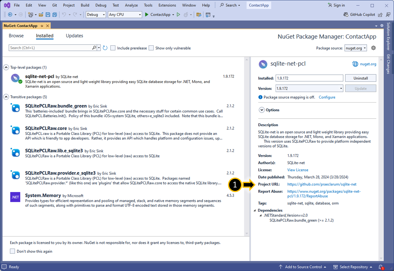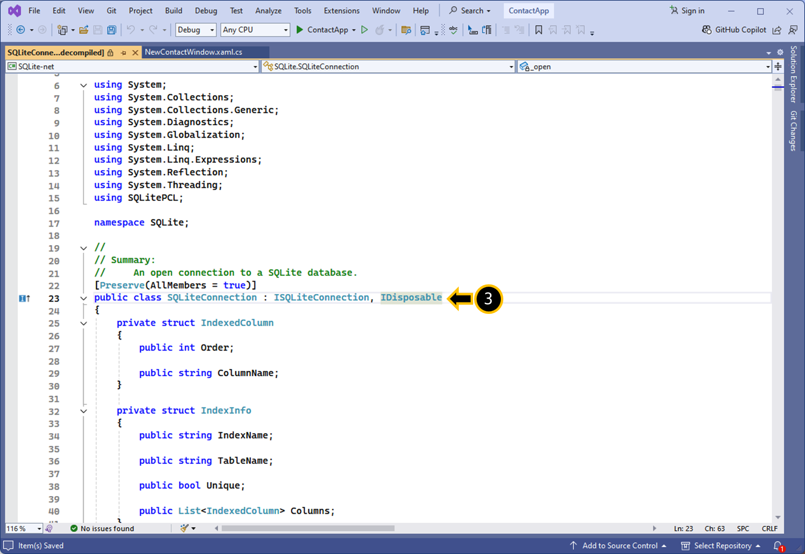 SQLiteConnection connection = new SQLiteConnection(databasePath);