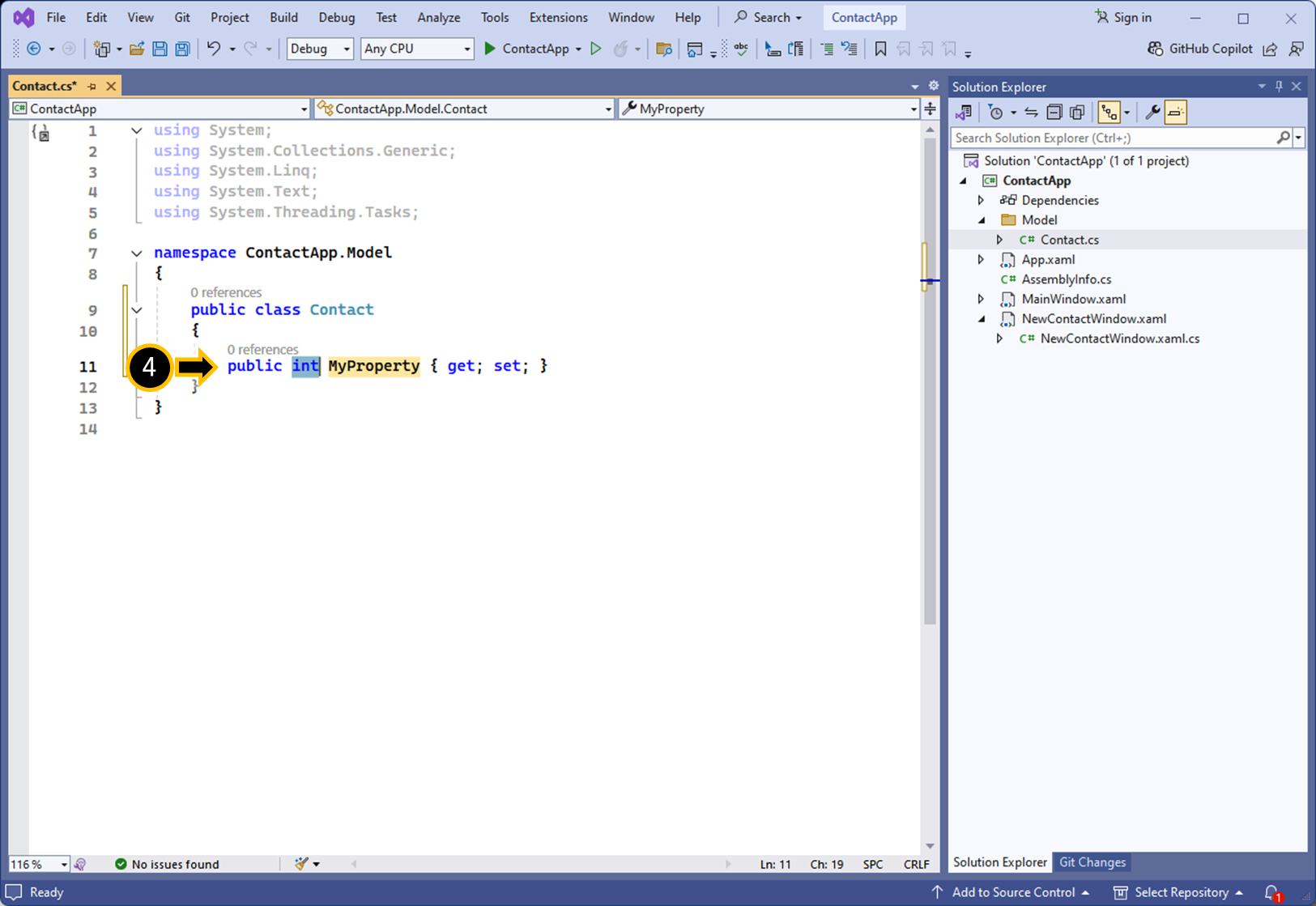 // Contact 데이터 모델 객체의 필드에 각각 값을 할당한다.