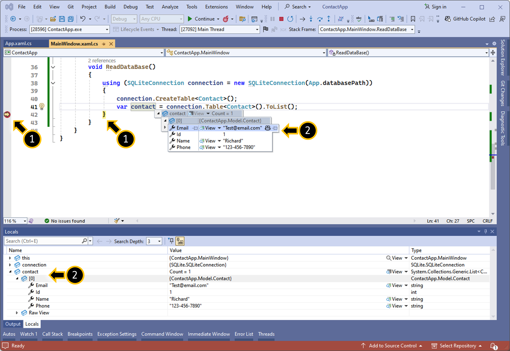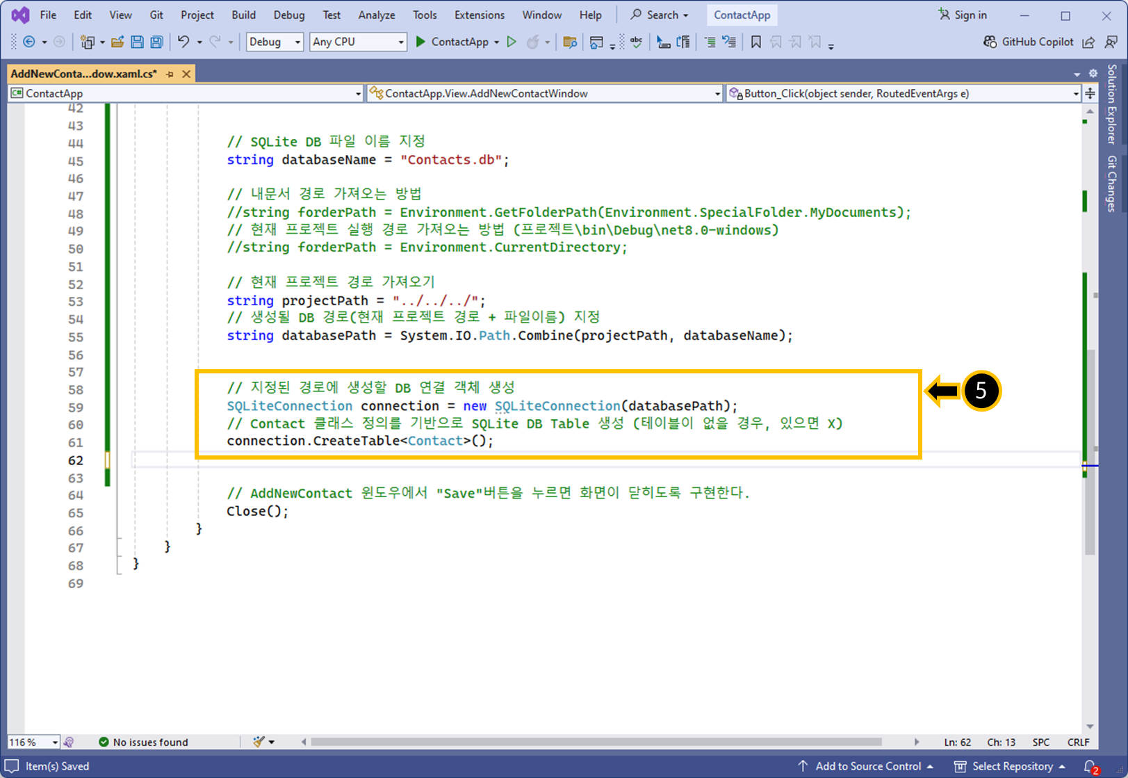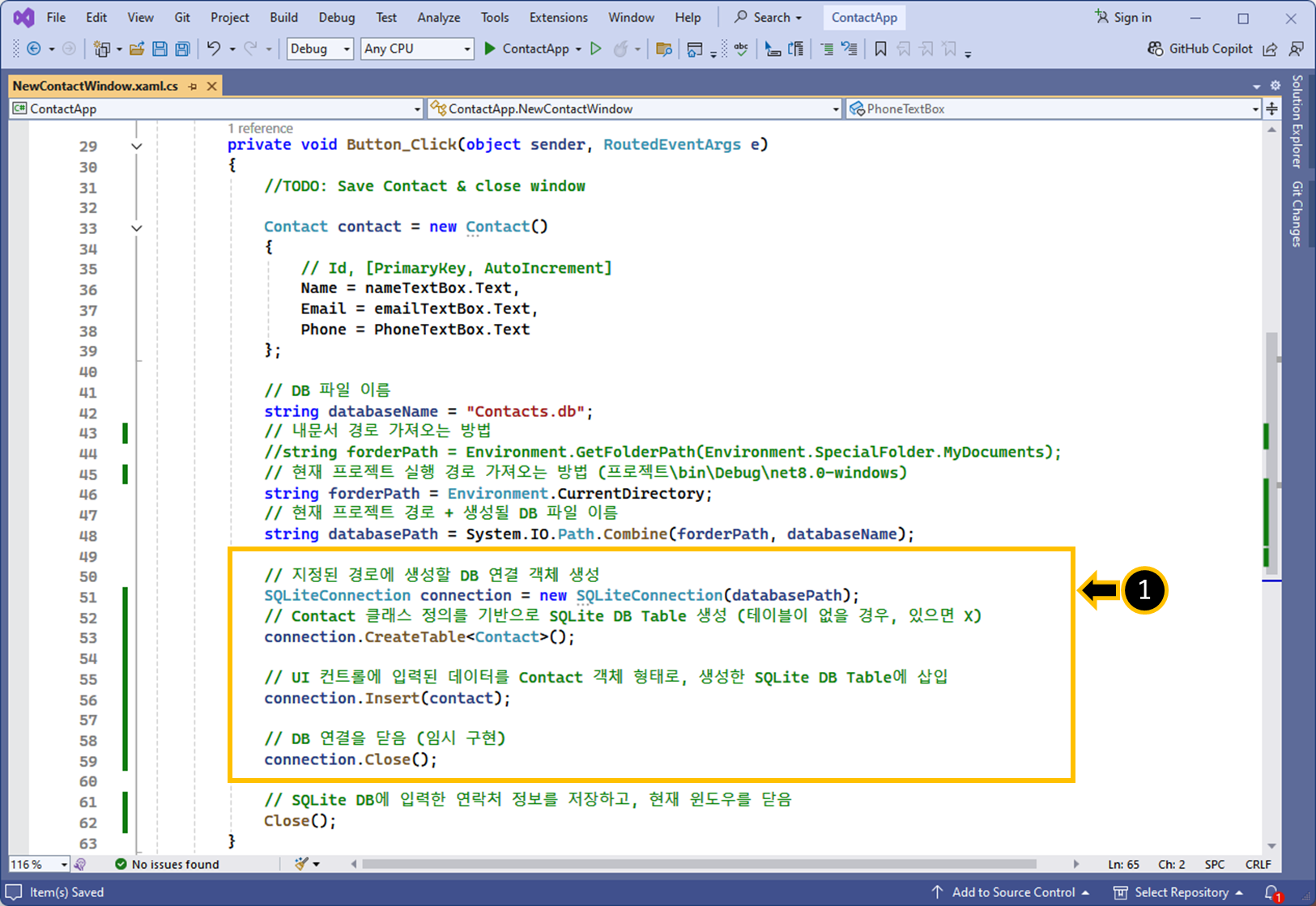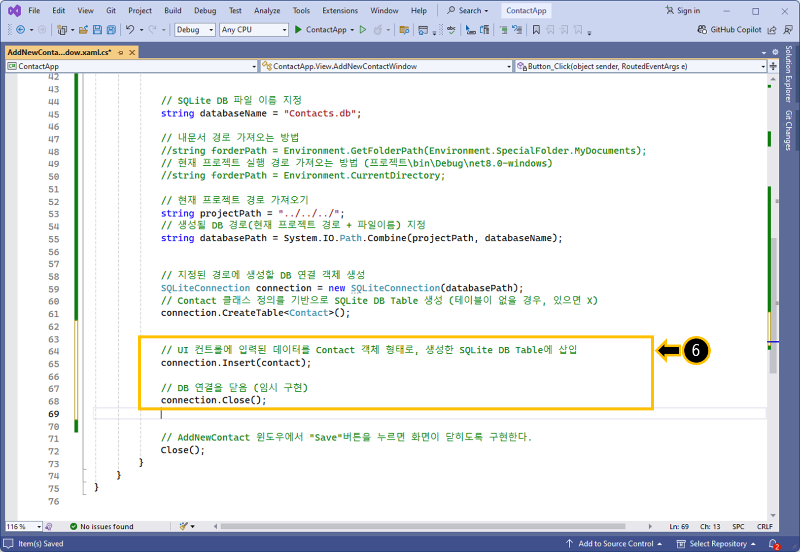 // UI 컨트롤에 입력된 데이터를 Contact 객체 형태로, 생성한 SQLite DB Table에 삽입
