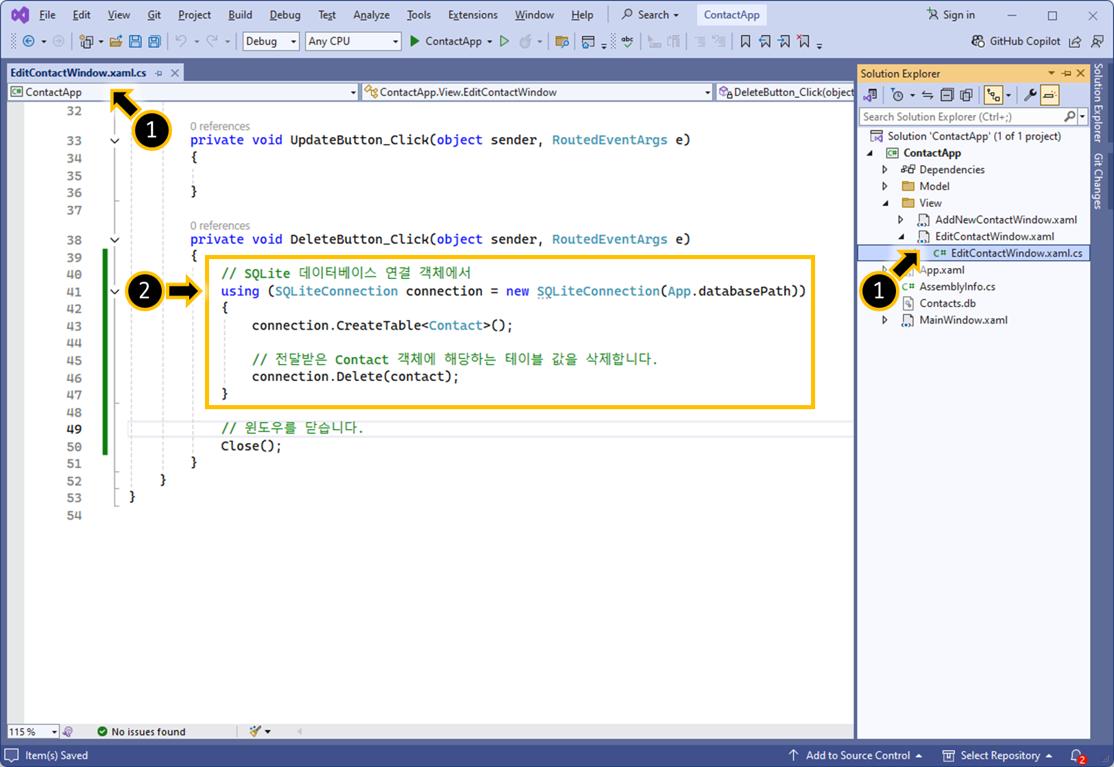 // 생성자로 contactListView 컨트롤에서 선택한 Contact 객체를 전달합니다.
