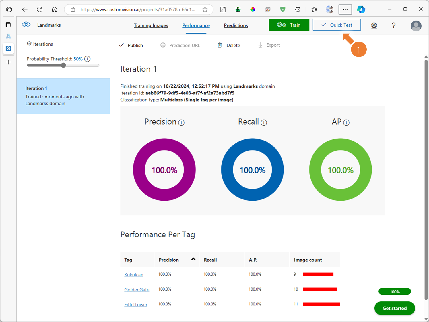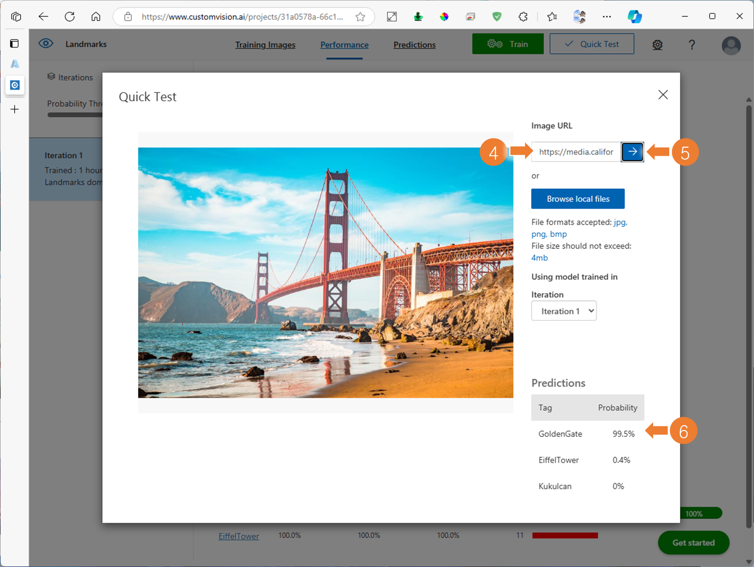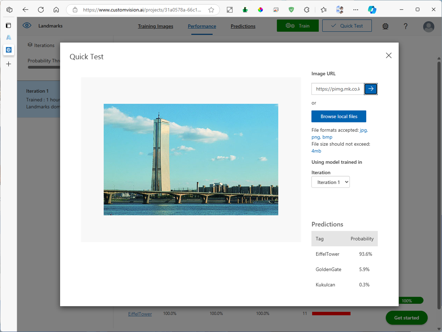4. Custom Vision 프로젝트에 학습된 모델 테스트