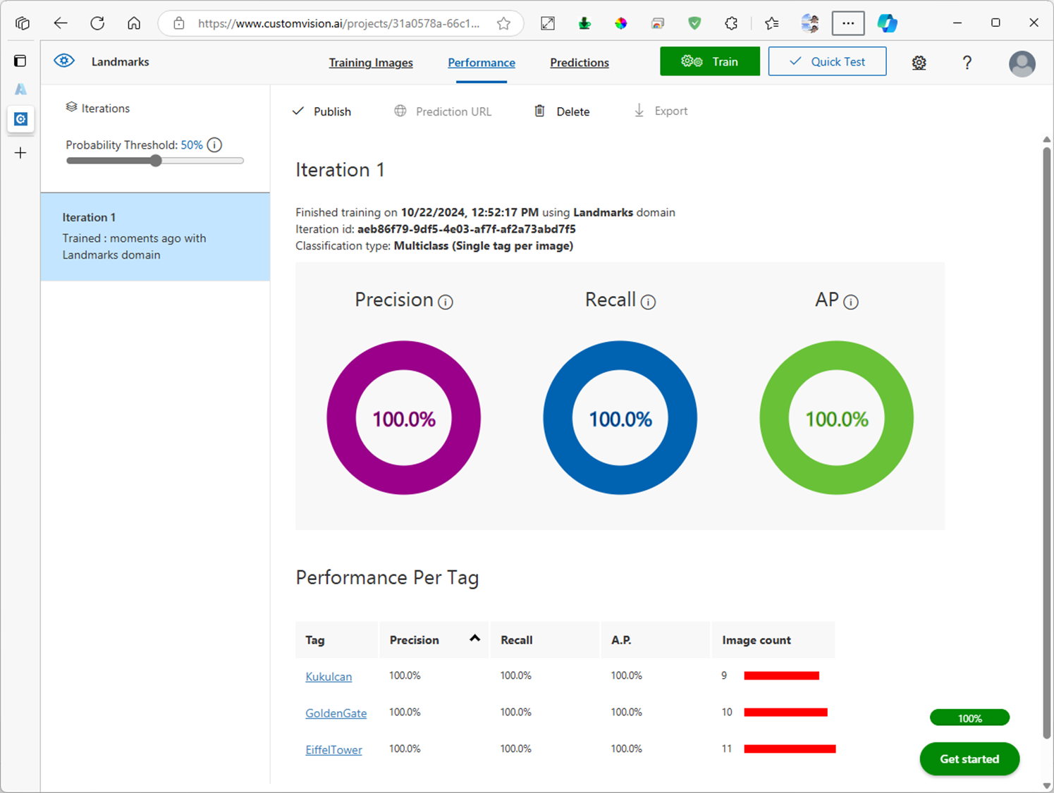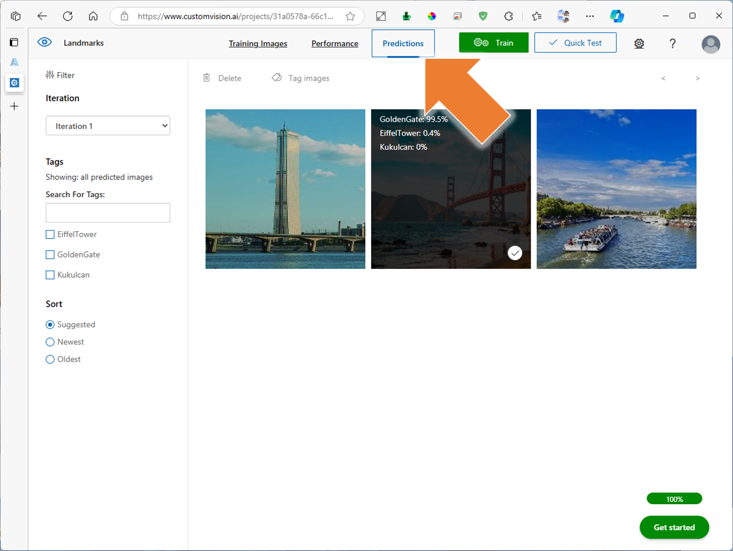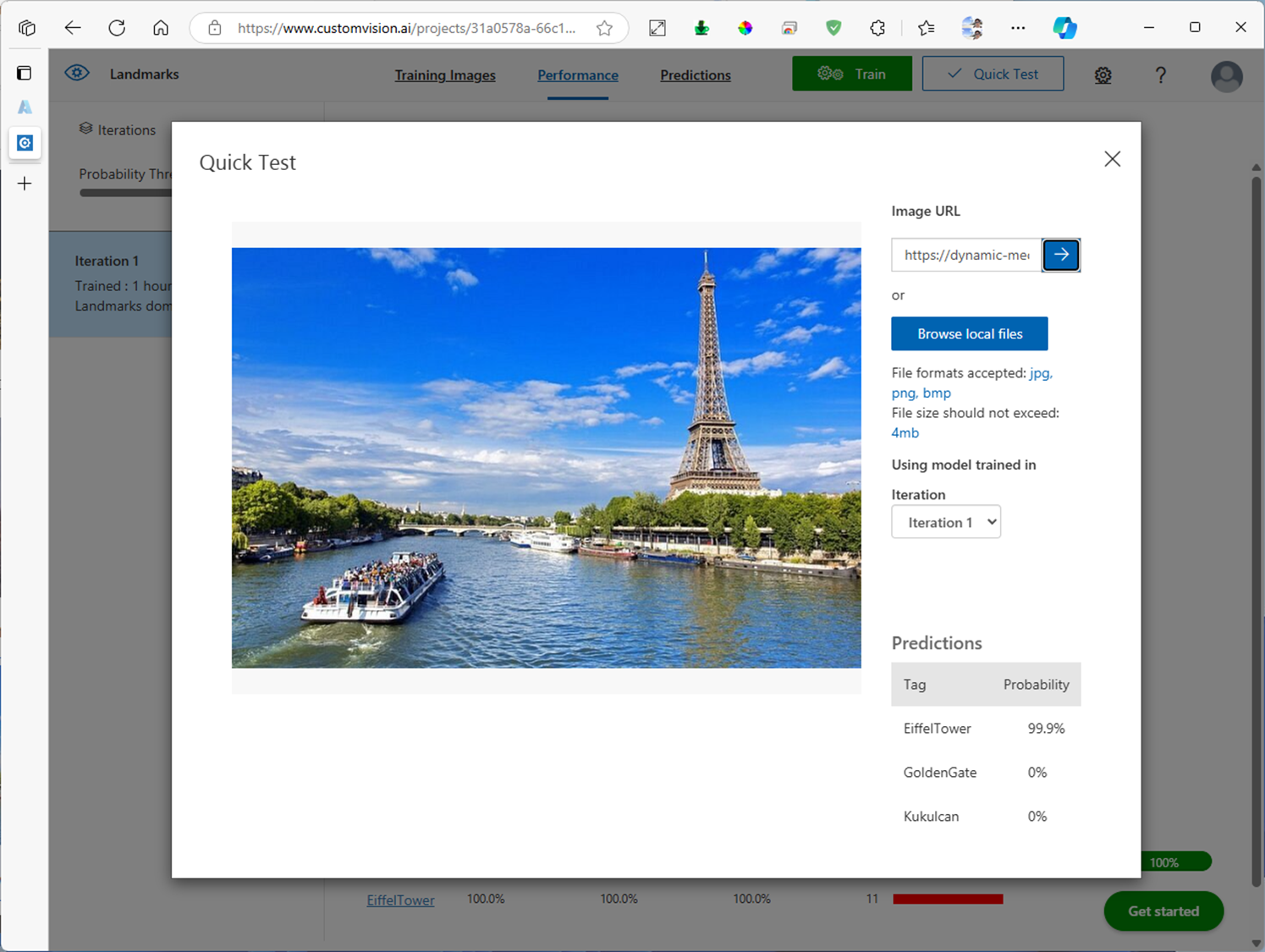 4. Custom Vision 프로젝트에 학습된 모델 테스트