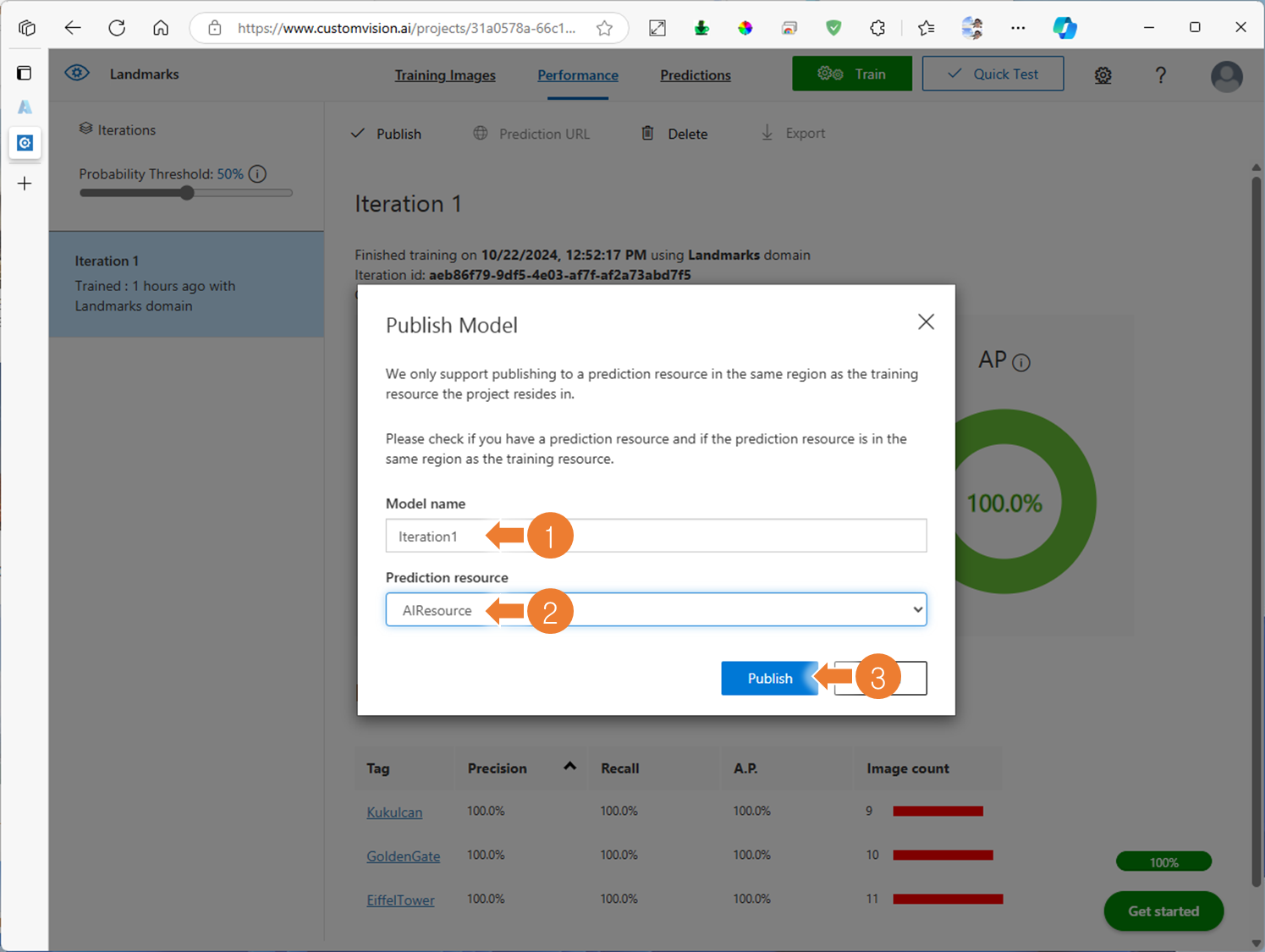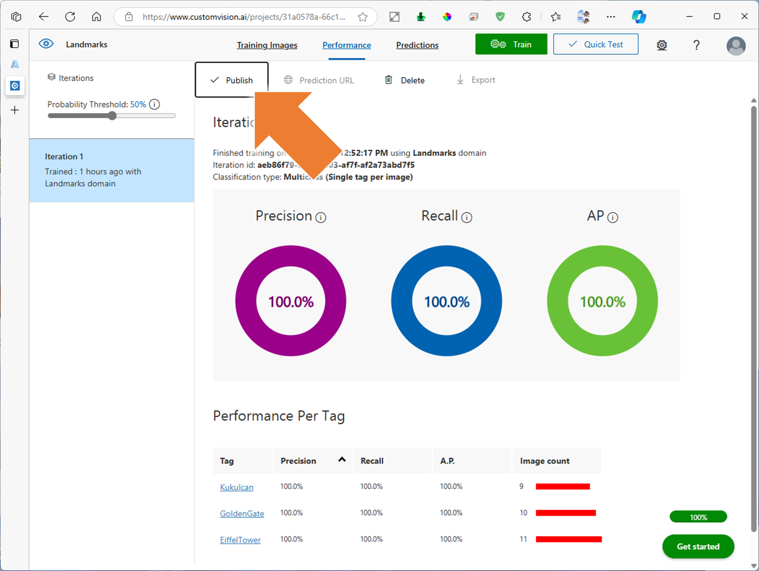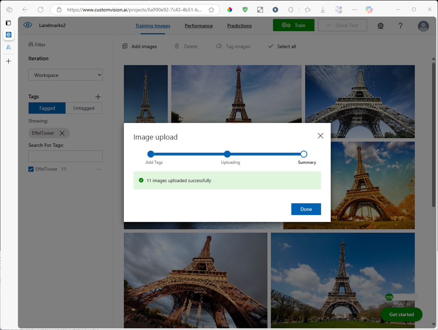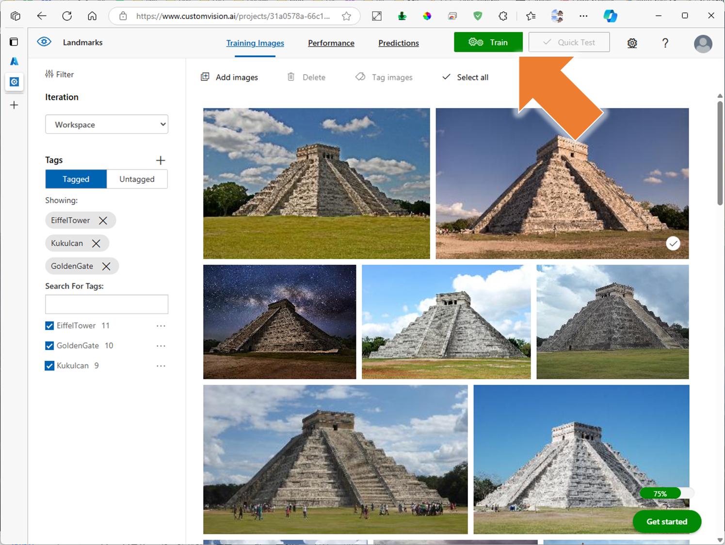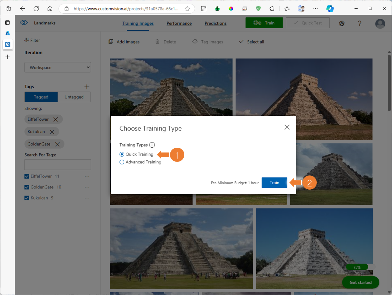 3. Custom Vision 프로젝트에 학습 시작