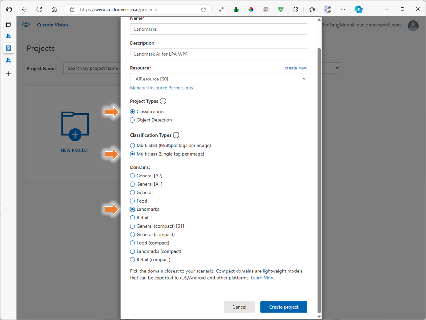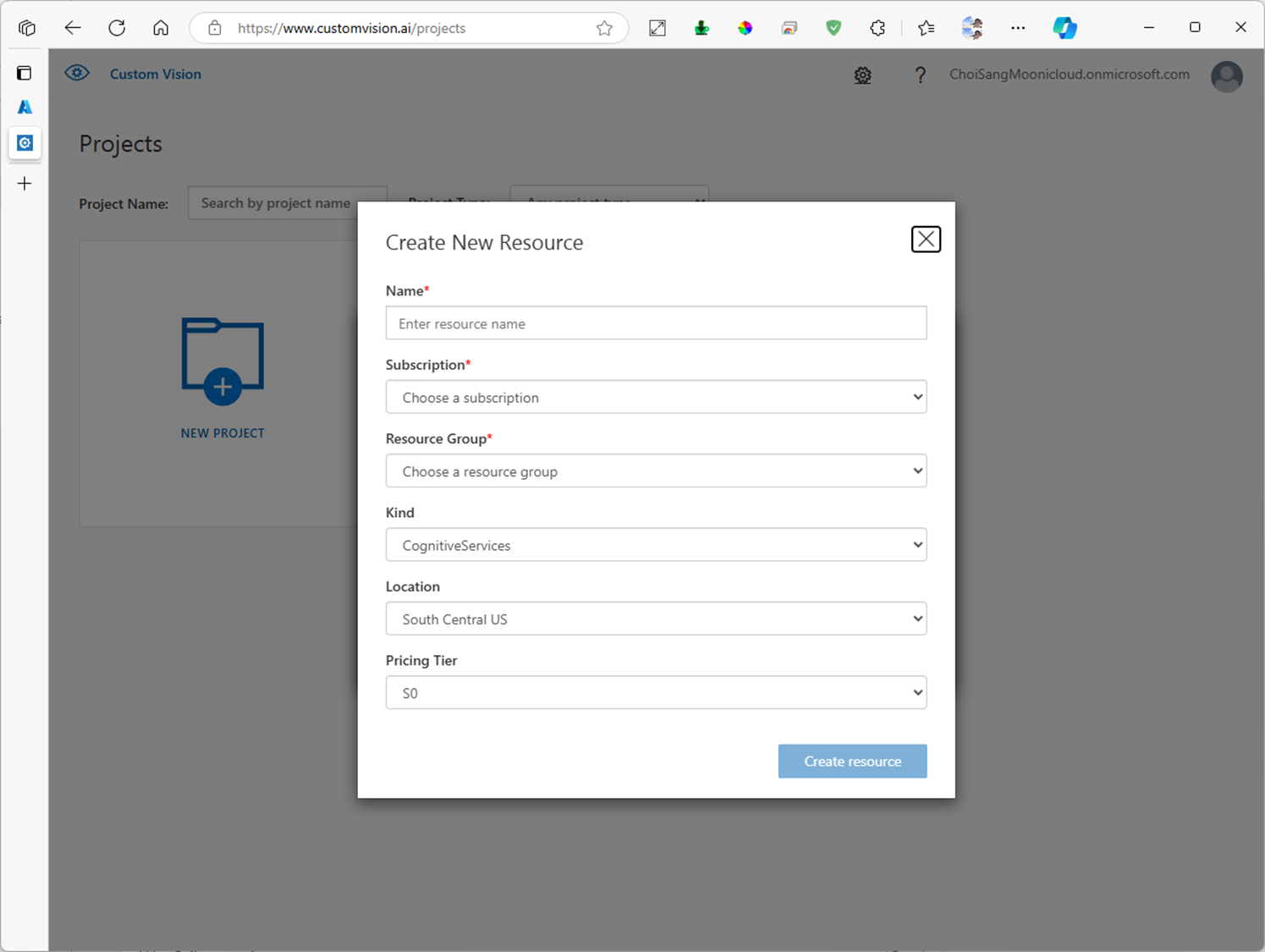 1. Custom Vision 프로젝트 생성